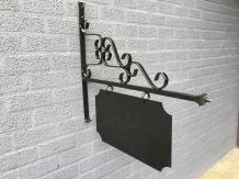 IJzeren reclamebord - antieke uithangbord - zwart - groot. Een prachtige toevoeging aan de voorgevel van uw winkel, bedrijf, huis of bijvoorbeeld veranda. Dit fraai vervaardigde wandbord uit ijzer brengt een klassieke, antieke sfeer en is een veelzijdige decoratie, geschikt voor zowel zakelijke als privégebruik in een exterieure omgeving. Leveringsomvan...
