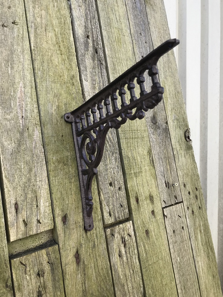 Plankhouder, wandsteun, gietijzeren hoeksteun, antiek
