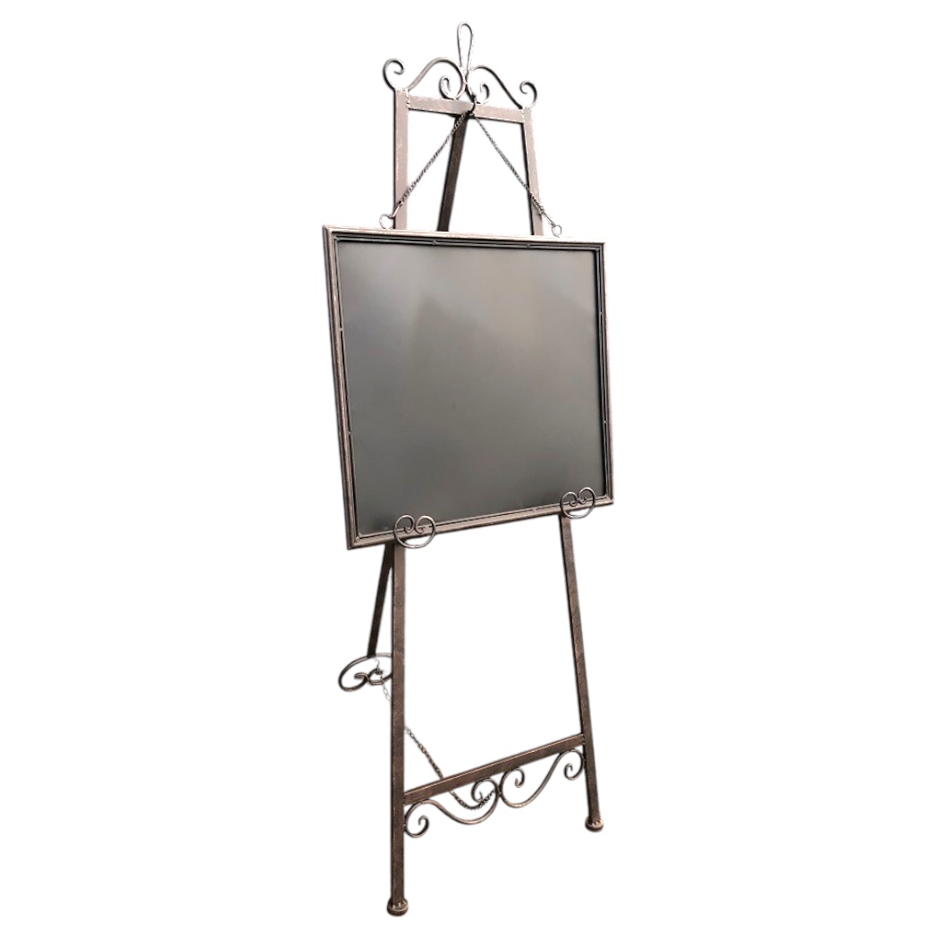 Eine elegante und funktionale Kreidetafel im antiken Look, aus robustem Schmiedeeisen. Ideal als Werbetafel am Eingang Ihres Ladens oder Gastronomiebetriebes, aber auch für den Innenbereich bestens geeignet, um beispielsweise Angebote, Tagesmenüs oder Ankündigungen stilvoll zu präsentieren. Dank der abnehmbaren Tafelfläche und dem klassischen Aufsteller ist dieses Brett auch als Deko-Element für zu Hause beliebt.