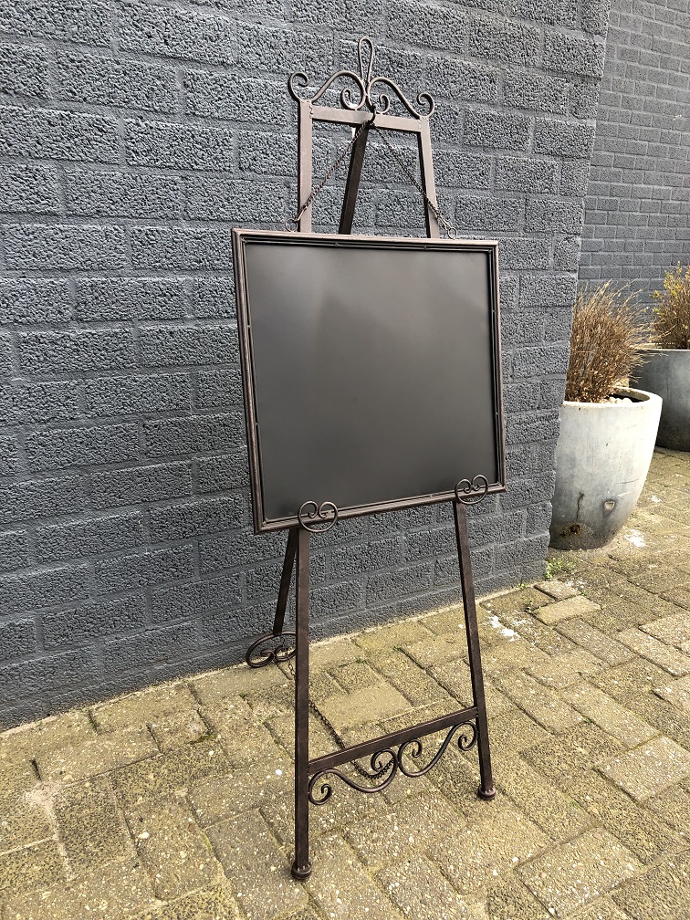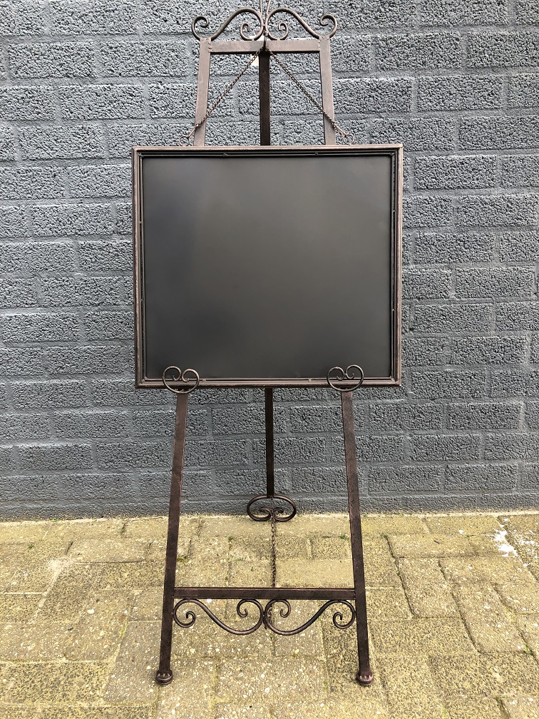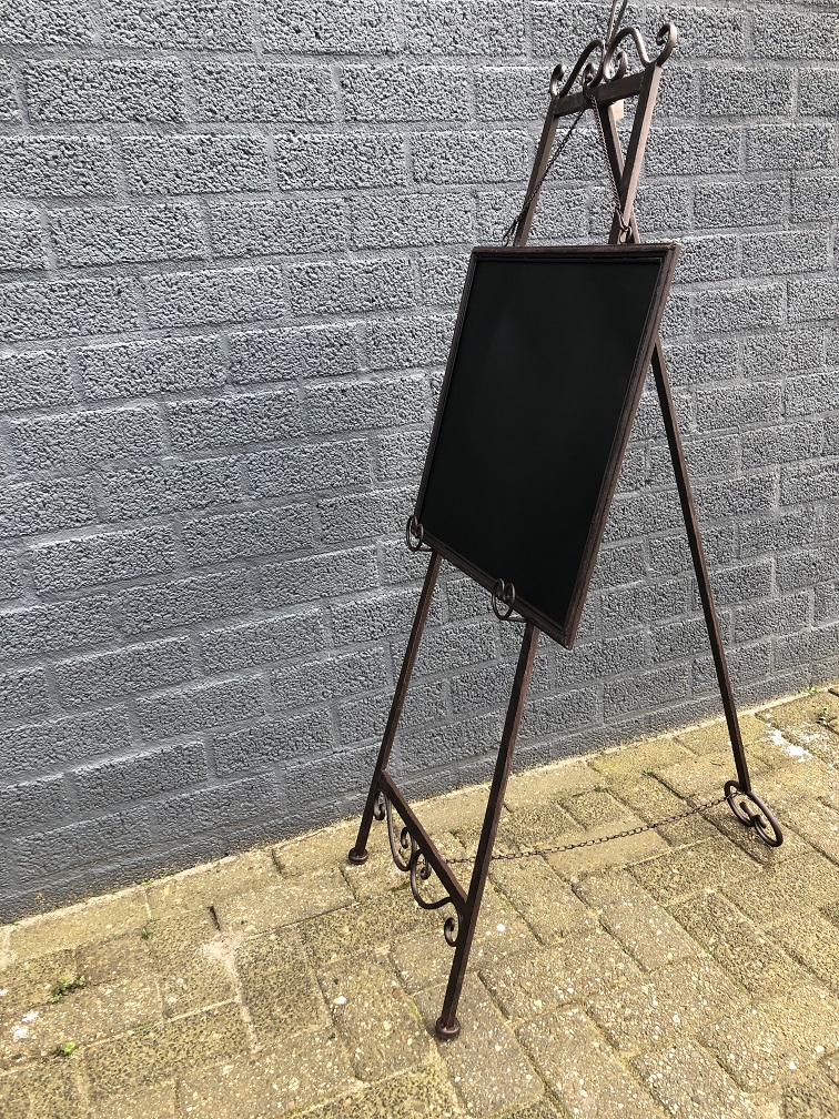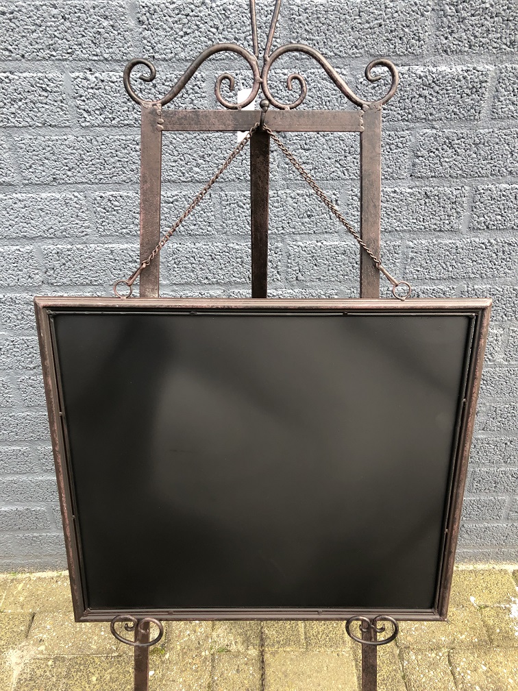 Lieferumfang: 1x freistehende Werbetafel mit Ständer, Schmiedeeisen, Kreidetafel mit abnehmbarer Tafel