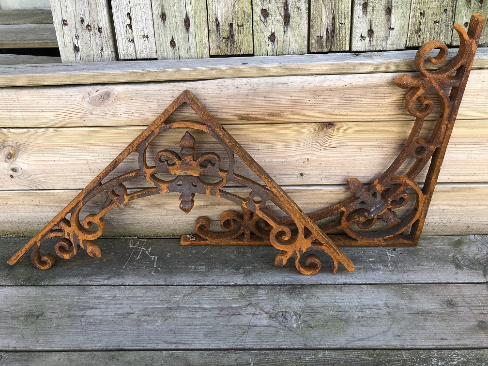 Eckstütz, schwere Gusseisenstütz für Regale, rostbraun