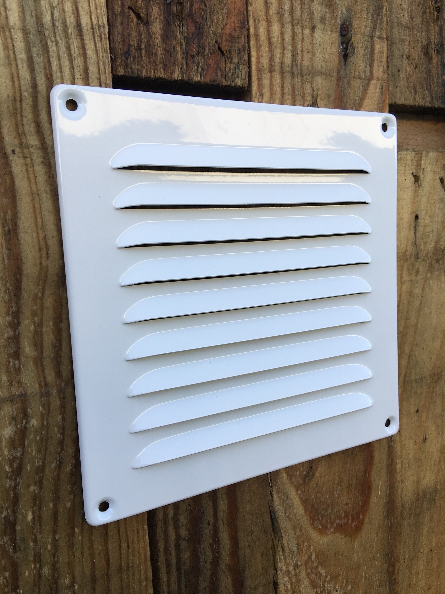 Aluminium-Luftgitter, weiß, Lamellengitter, schön verarbeitet und dauerhaft weiß beschichtet.