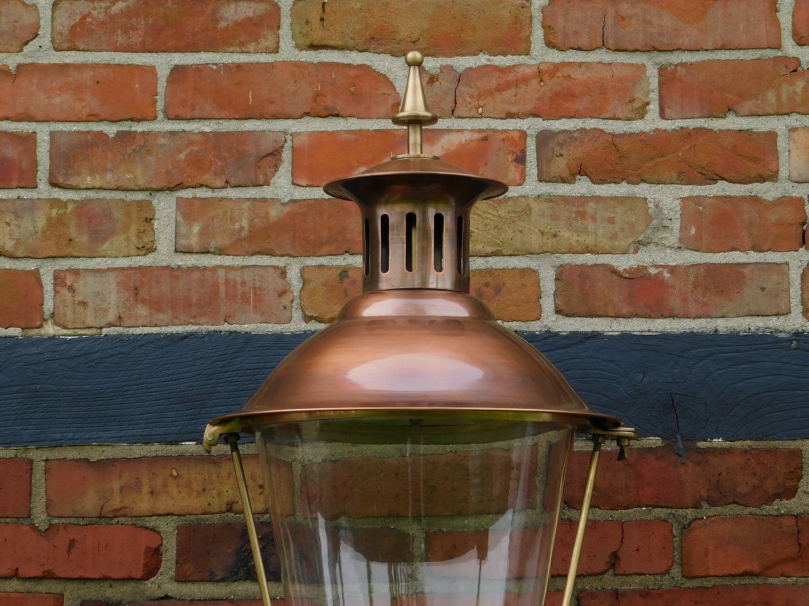 Außerdem ist der Lampenschirm aus hochwertigem Messing und Kupfer gefertigt und enthält rundes Glas. Dies macht die Gartenlaterne zu einem echten Hingucker!