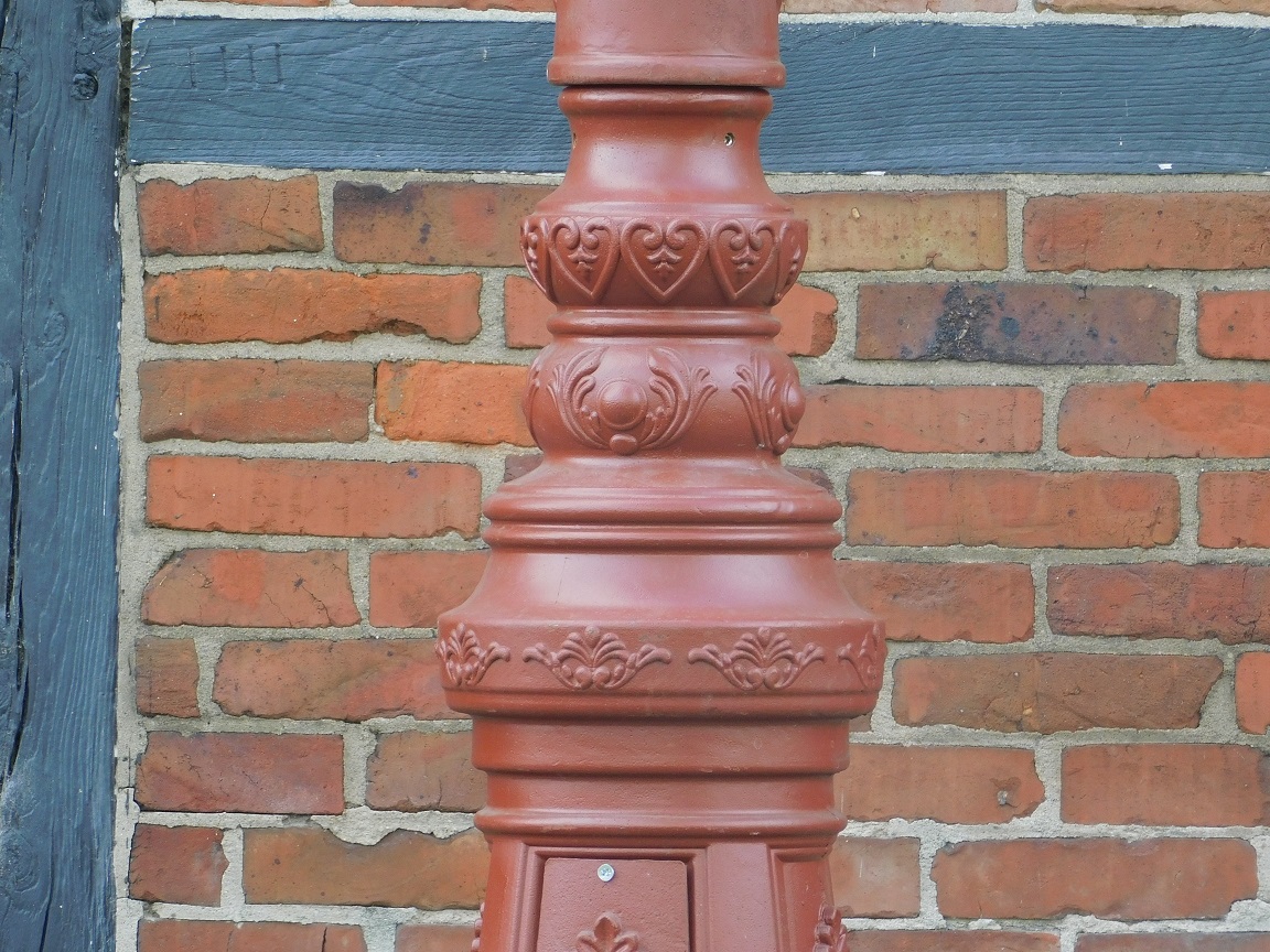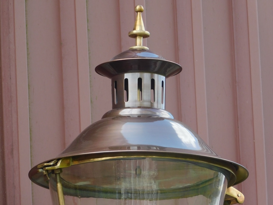 Lieferumfang: XXL-Laternenmast mit Kappe, Gusseisen von Kupfer und Messing.