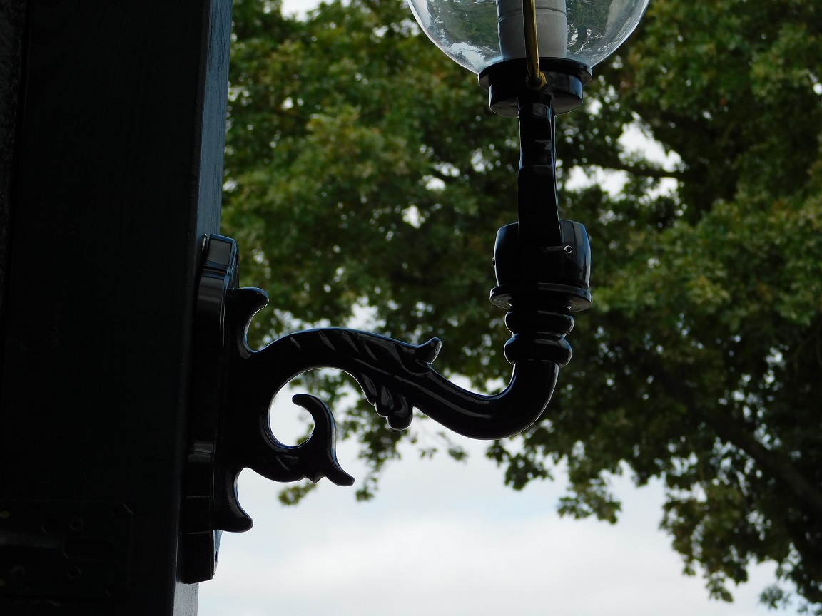 Eine klassische Außenleuchte für den Eingangsbereich Ihres Hauses und/oder Gartens. Diese hochwertige und nostalgische Wandleuchte wurde in antiker Form mit einem großen Schirm entworfen.