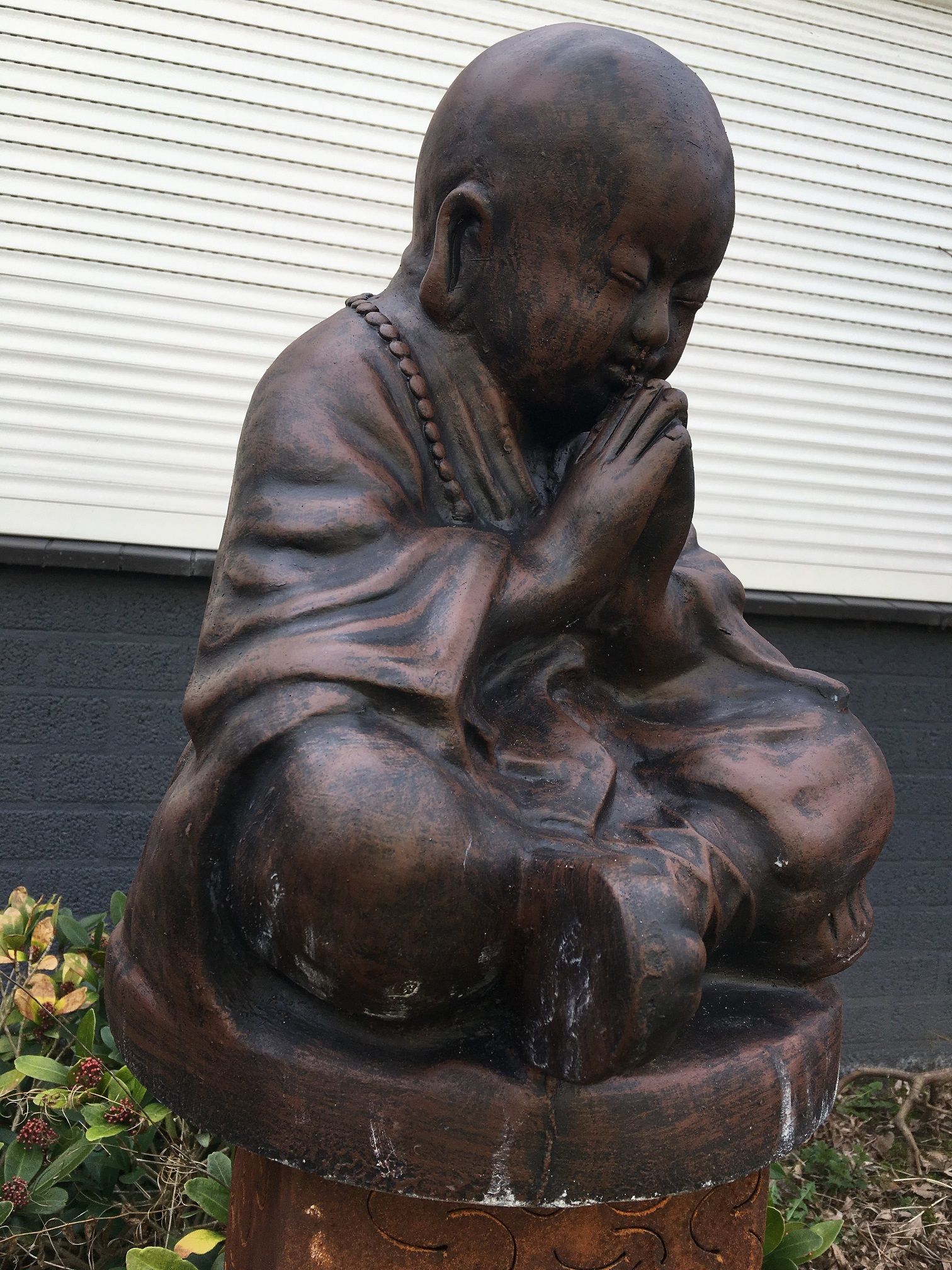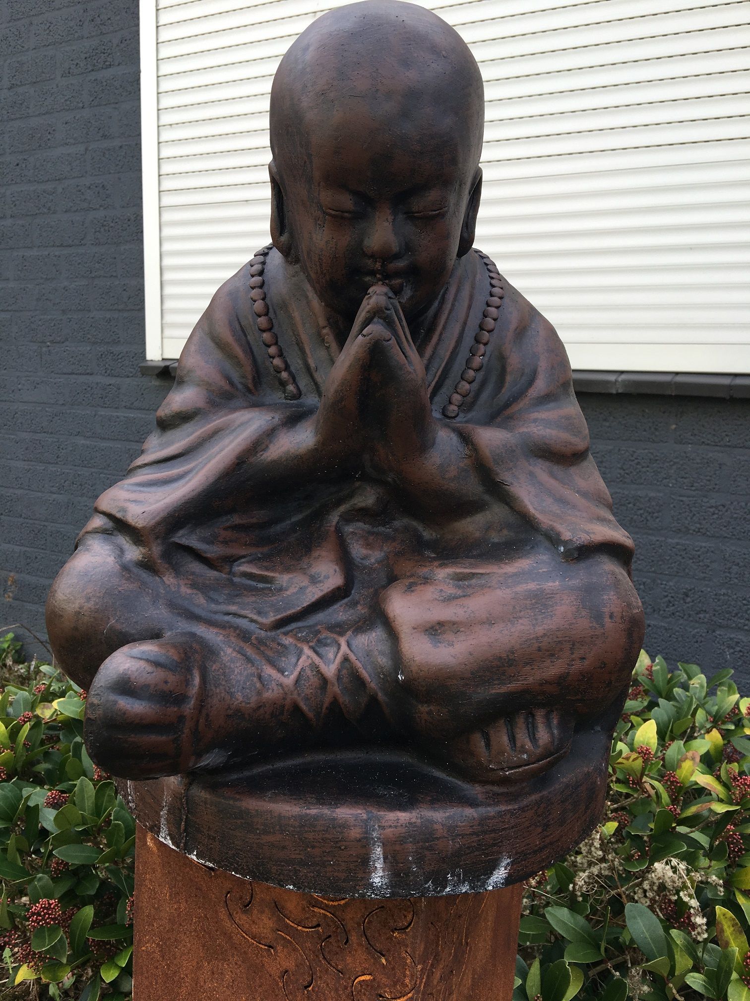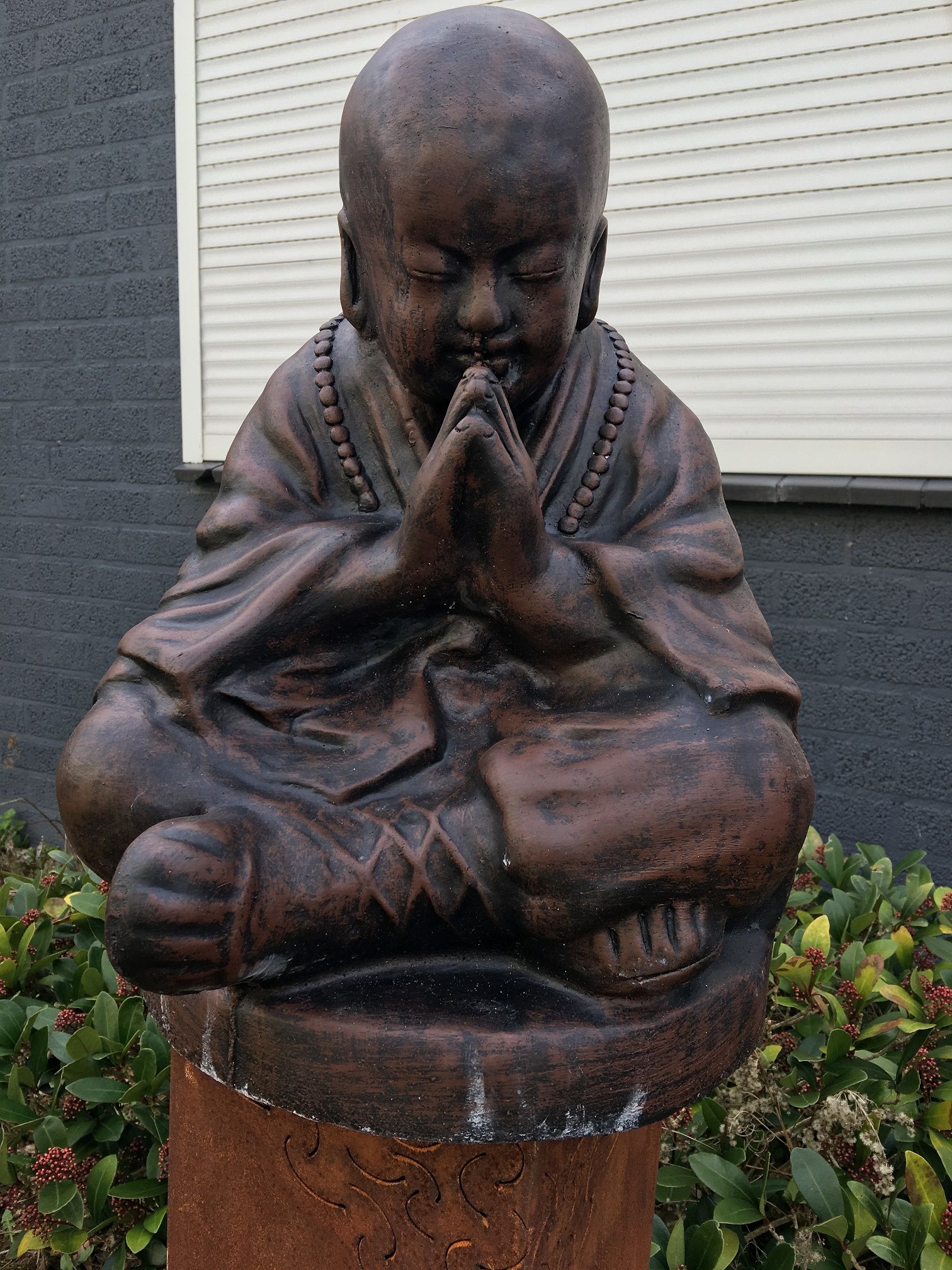 Bringen Sie mit dieser wunderschönen Statue eines betenden Shaolin-Mönchs eine heitere und spirituelle Atmosphäre in Ihren Garten oder Ihr Interieur. Der warme Braunton und die detailreiche Verarbeitung machen diese Statue zu einem besonderen Hingucker. Ideal für Meditationsplätze, Gärten oder als sinnvolles Geschenk.