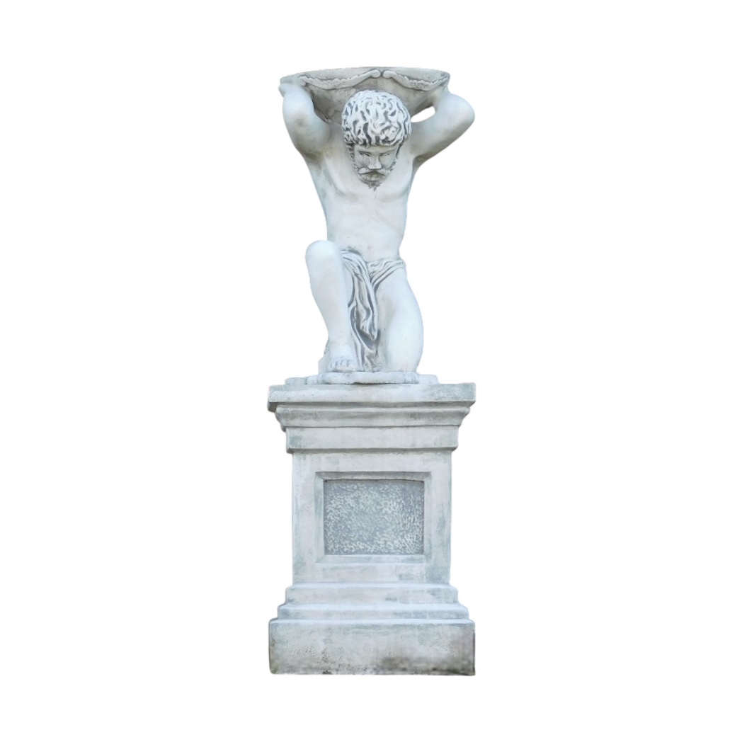 Diese Skulptur ist vollständig aus Stein gefertigt und mit einem klassischen weißen Finish versehen. Sie strahlt pure Erhabenheit aus. Der mythische Atlas, der den Globus auf seinen Schultern trägt, symbolisiert sowohl Verantwortung als auch Ausdauer. Der passende Sockel unterstreicht die stattliche Erscheinung und macht ihn ideal für den Einsatz im Innen- sowie Außenbereich.