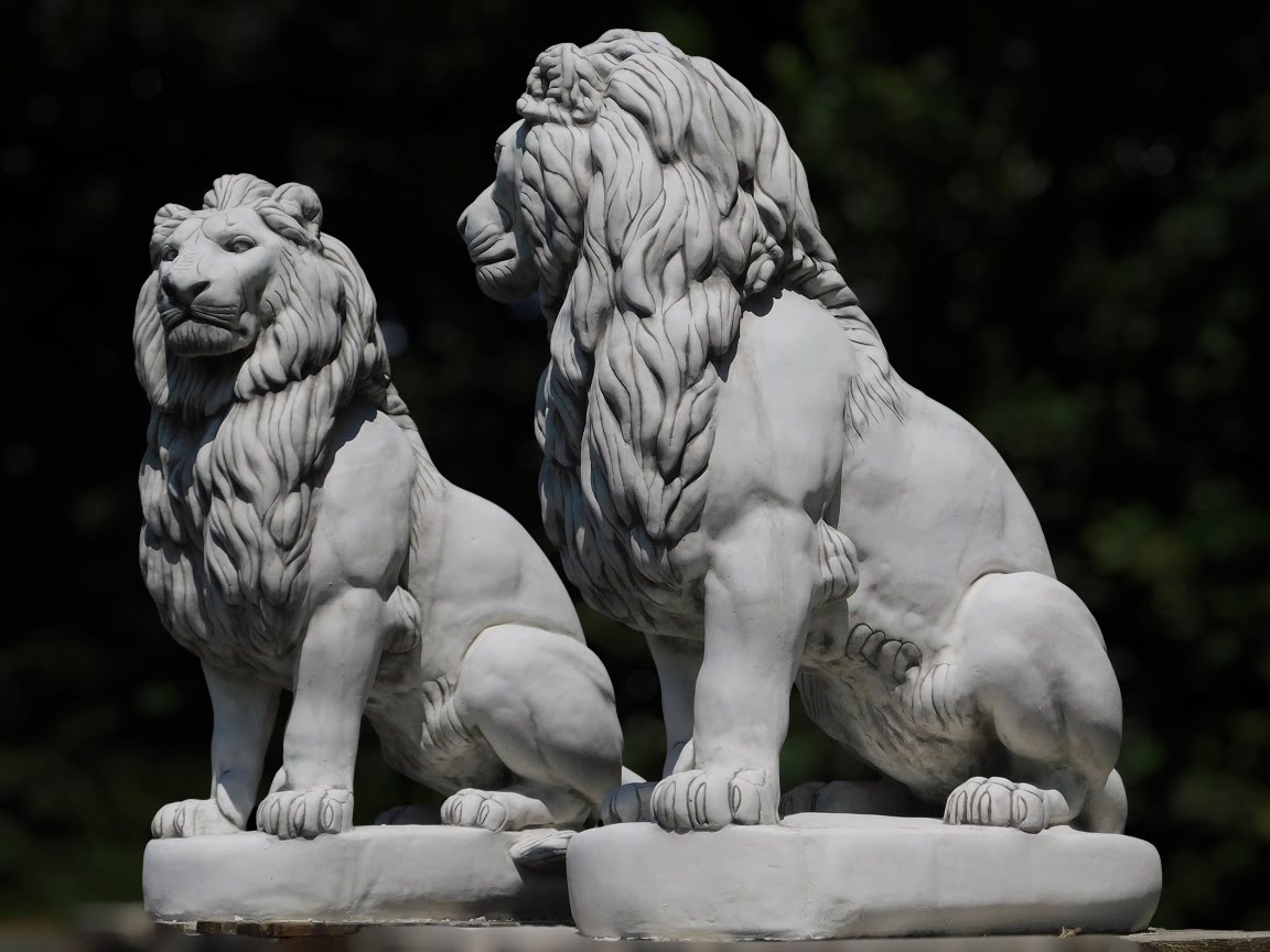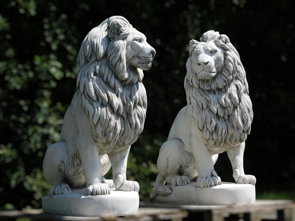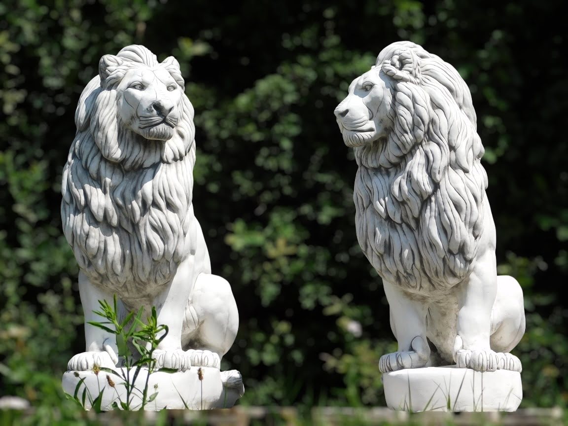 Dieses Set aus Steinlöwen ist sehr imposant. Die großen Gartenfiguren eignen sich als Blickfang am Eingang Ihrer Auffahrt, in einem Park oder an jedem anderen Ort; die beiden hochwertigen Skulpturen sorgen für ein exklusives Erscheinungsbild!