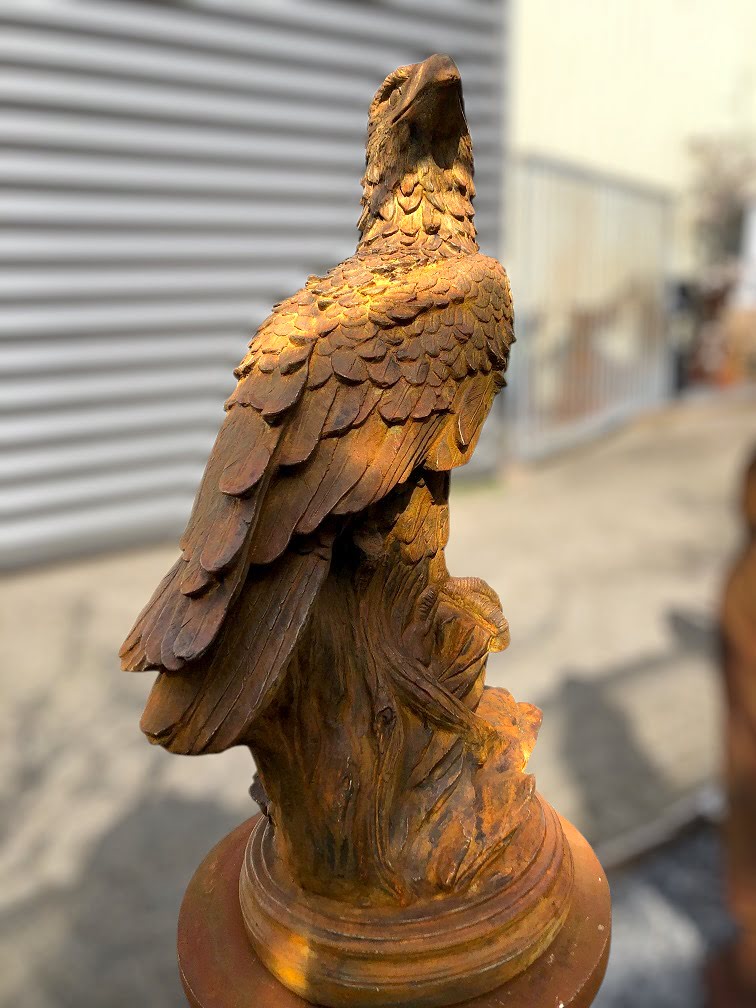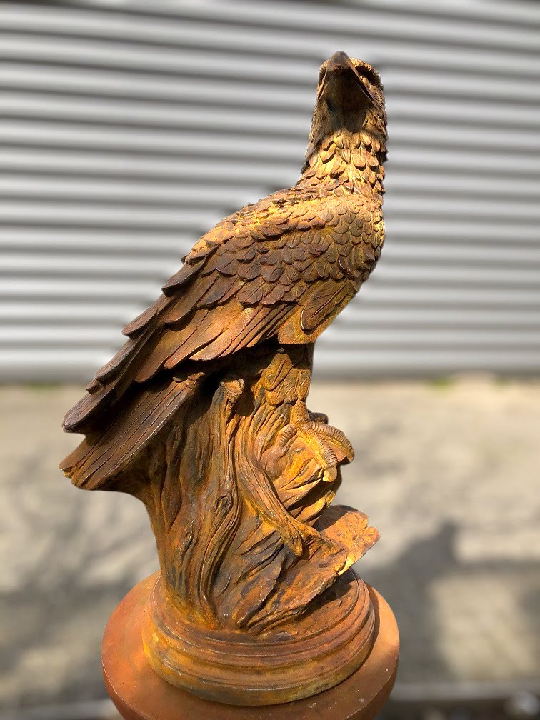 Einzigartige Gartenstatue eines Adlers: eine Statue aus Oxid (dunkelbraun) als exklusives Gartenornament aus schwerem Stein!