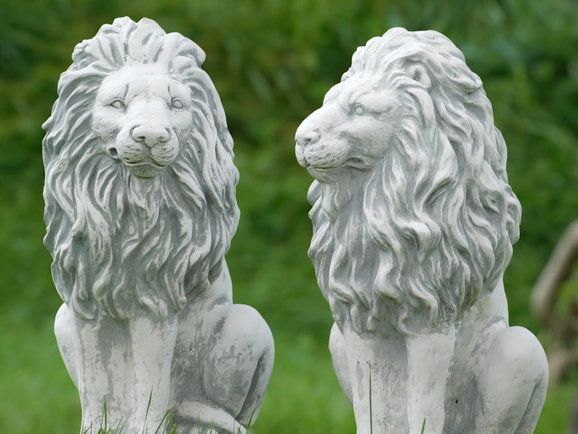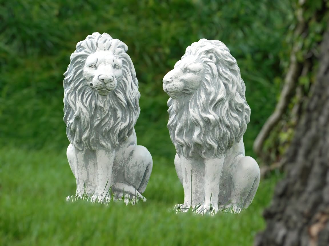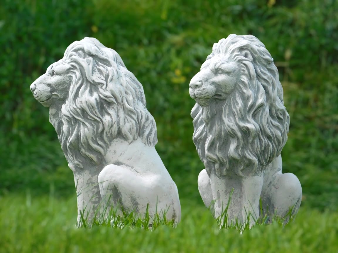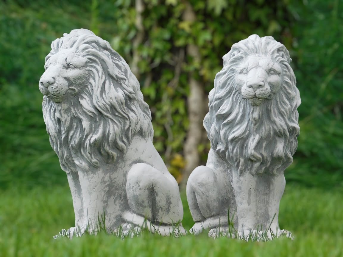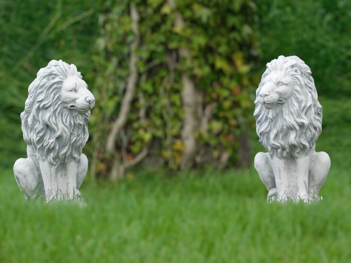 Gartenfiguren-Satz Löwen aus Stein, Tier Skulpturen für den Außenbereich.