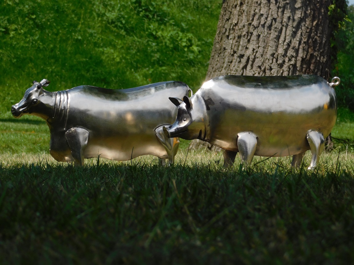 Alternative Artikel für Kuh - Metallstatue - 26 cm - Chromfarbe - abstrakt