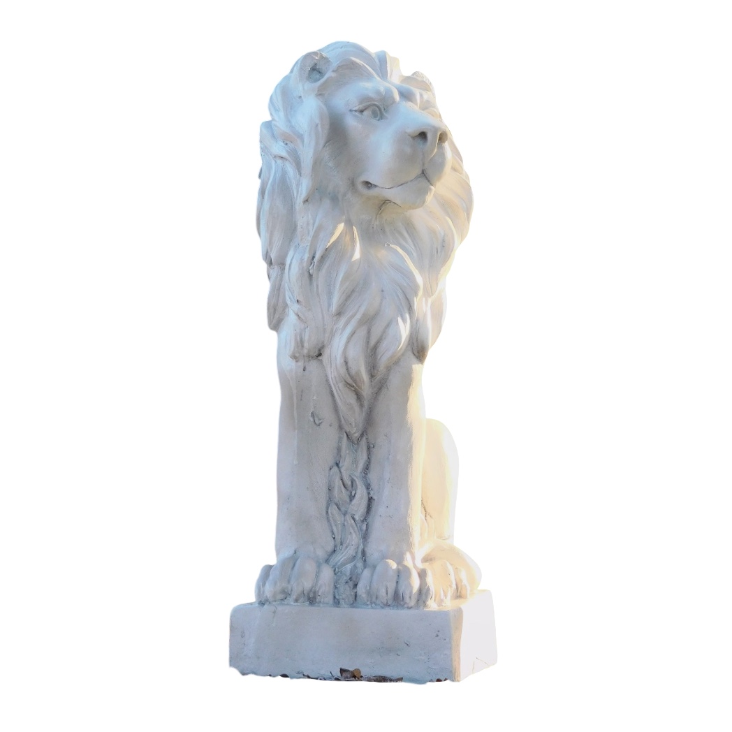 Sitzender Löwe - Polystone - 78 cm - weiß/grau - links.