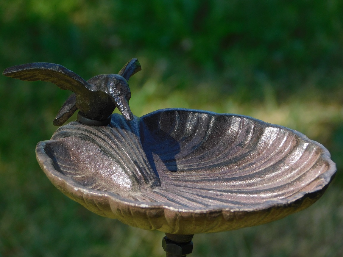 Diese Vogeltränke ist aus robustem Gusseisen gefertigt und strahlt Stil und Qualität aus.