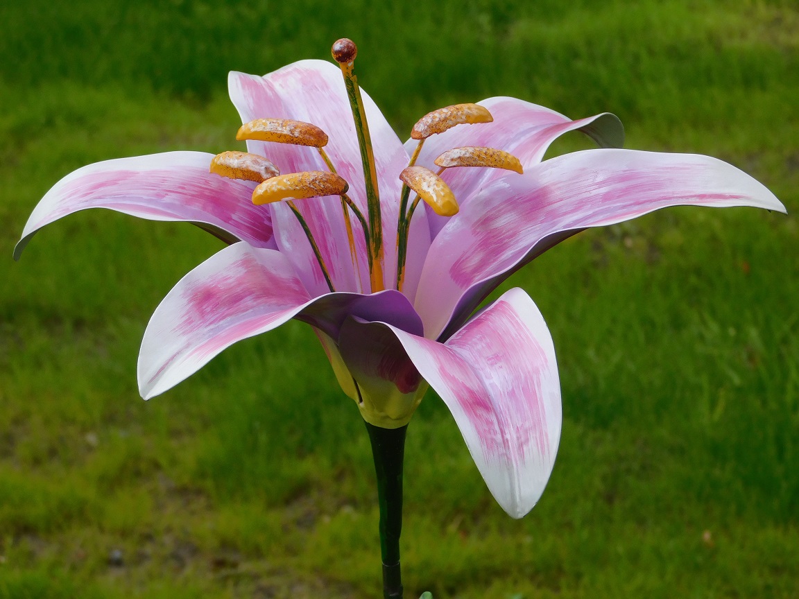 Lieferumfang: 1 x Lilie am Stiel, Metall, farbig.