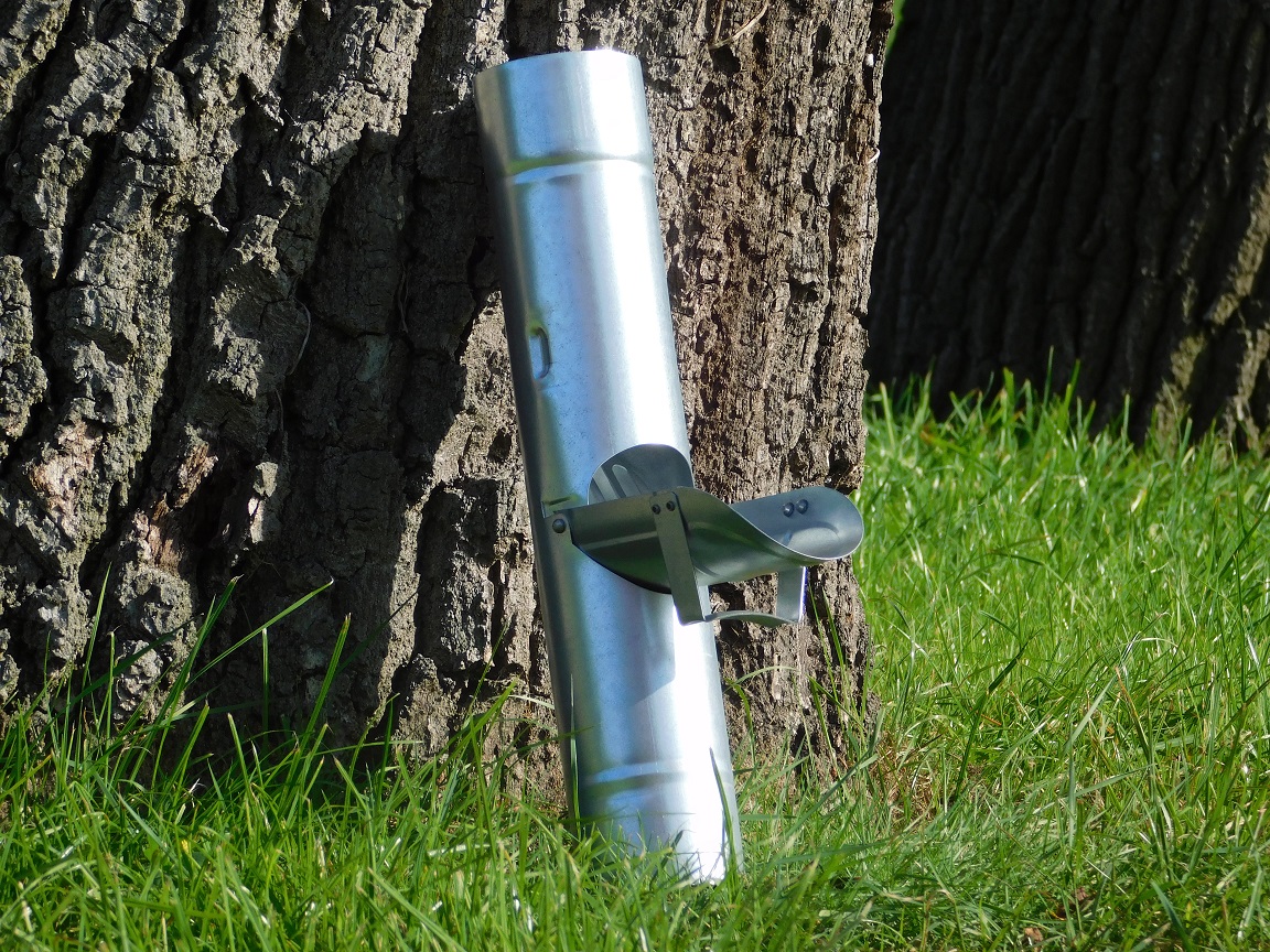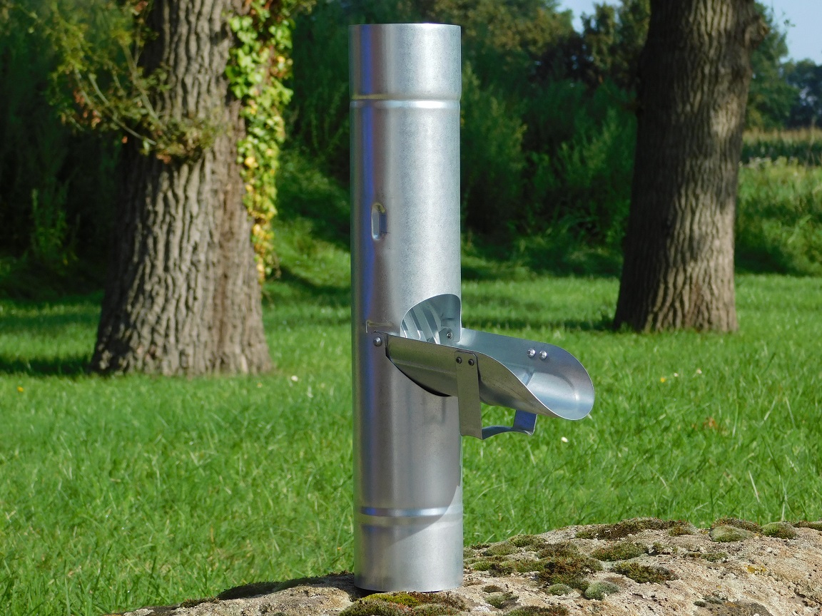 Wenn die Tonne oder der Eimer voll ist, kann das Ventil hochgezogen werden und das Regenwasser wird weiter über das Fallrohr abgeleitet.