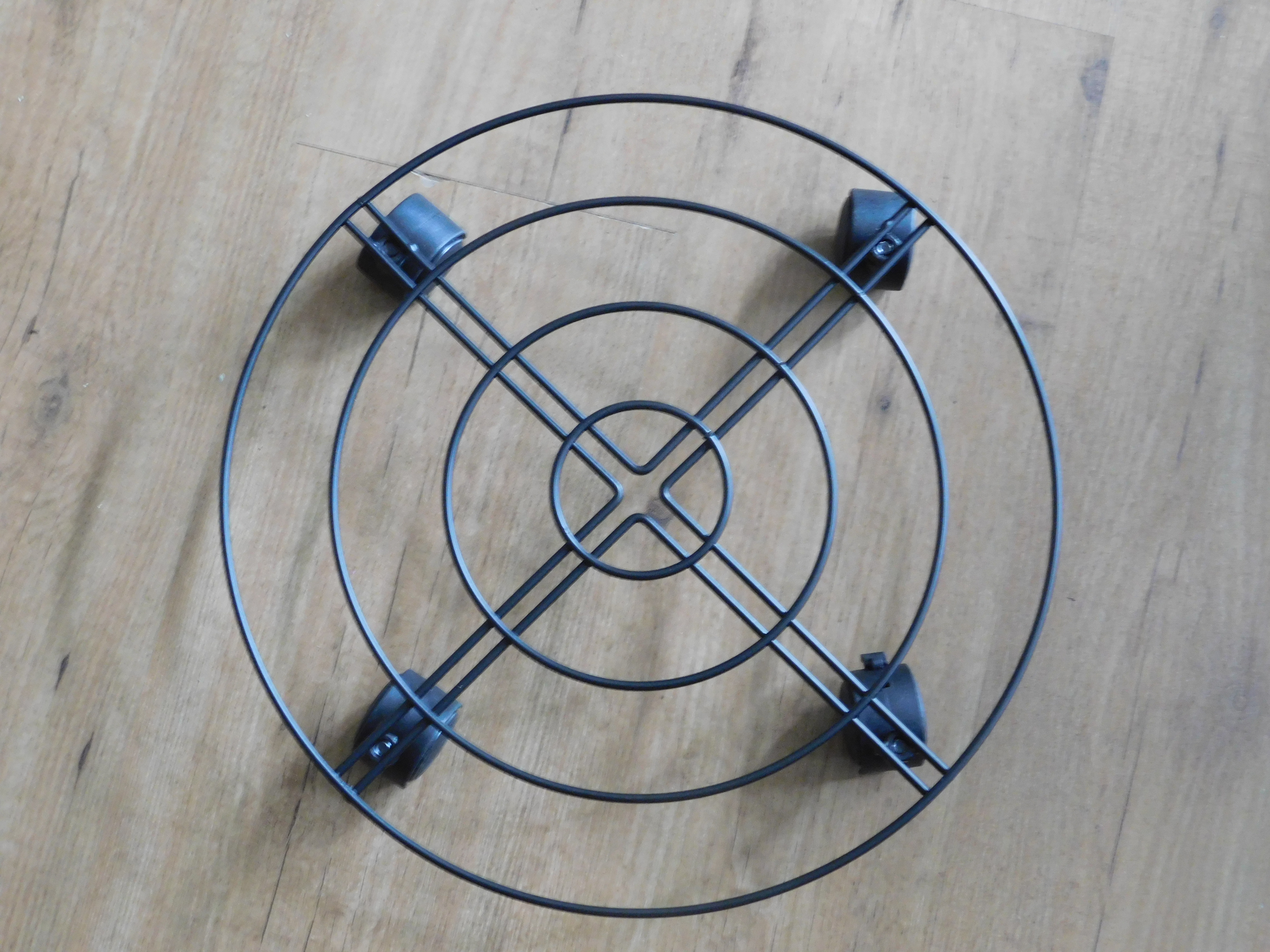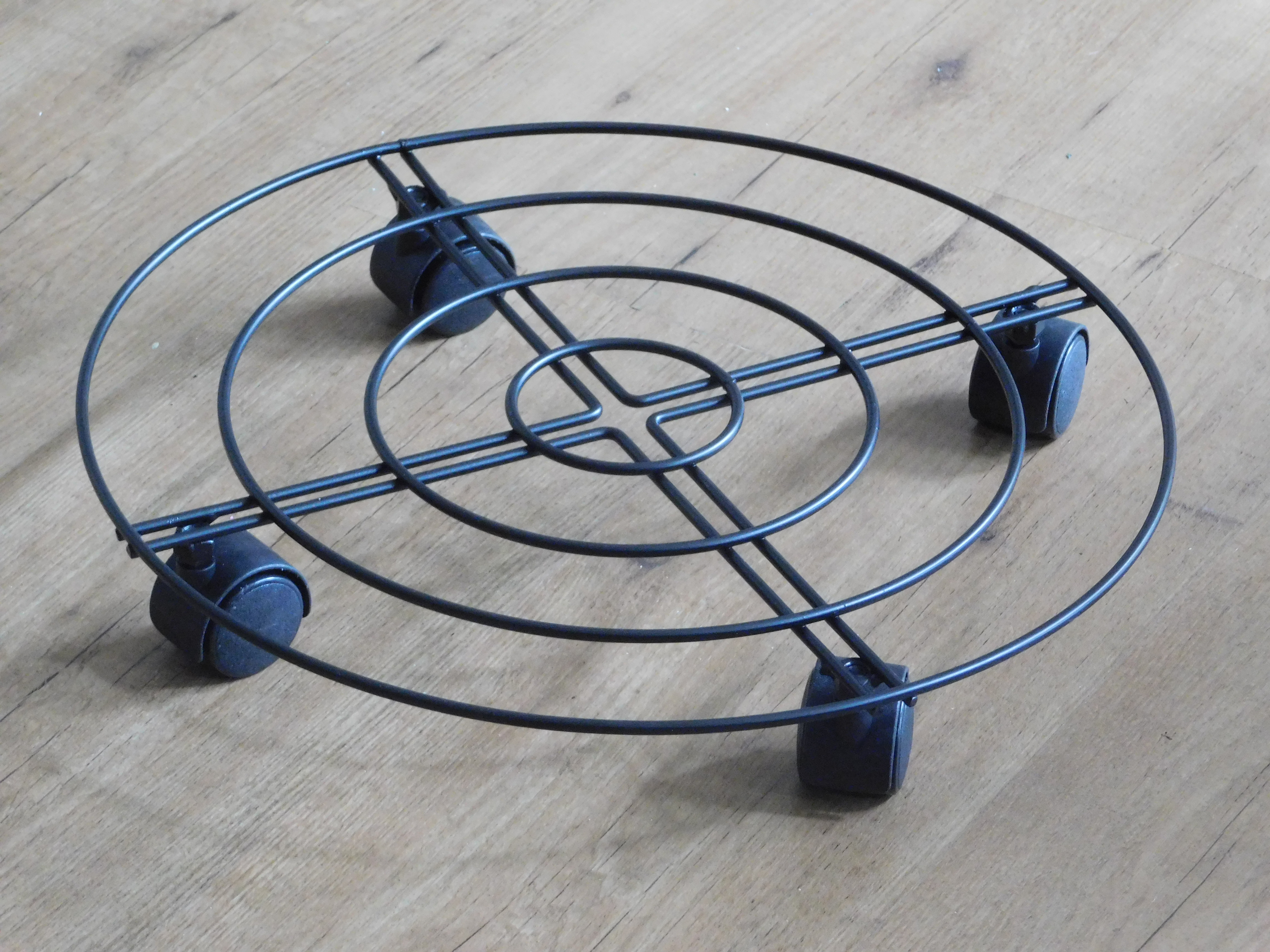 Dieser runde Pflanzenwagen aus Metall mit vier Rollen eignet sich perfekt zum Bewegen schwerer Pflanzgefäße oder Pflanzen.