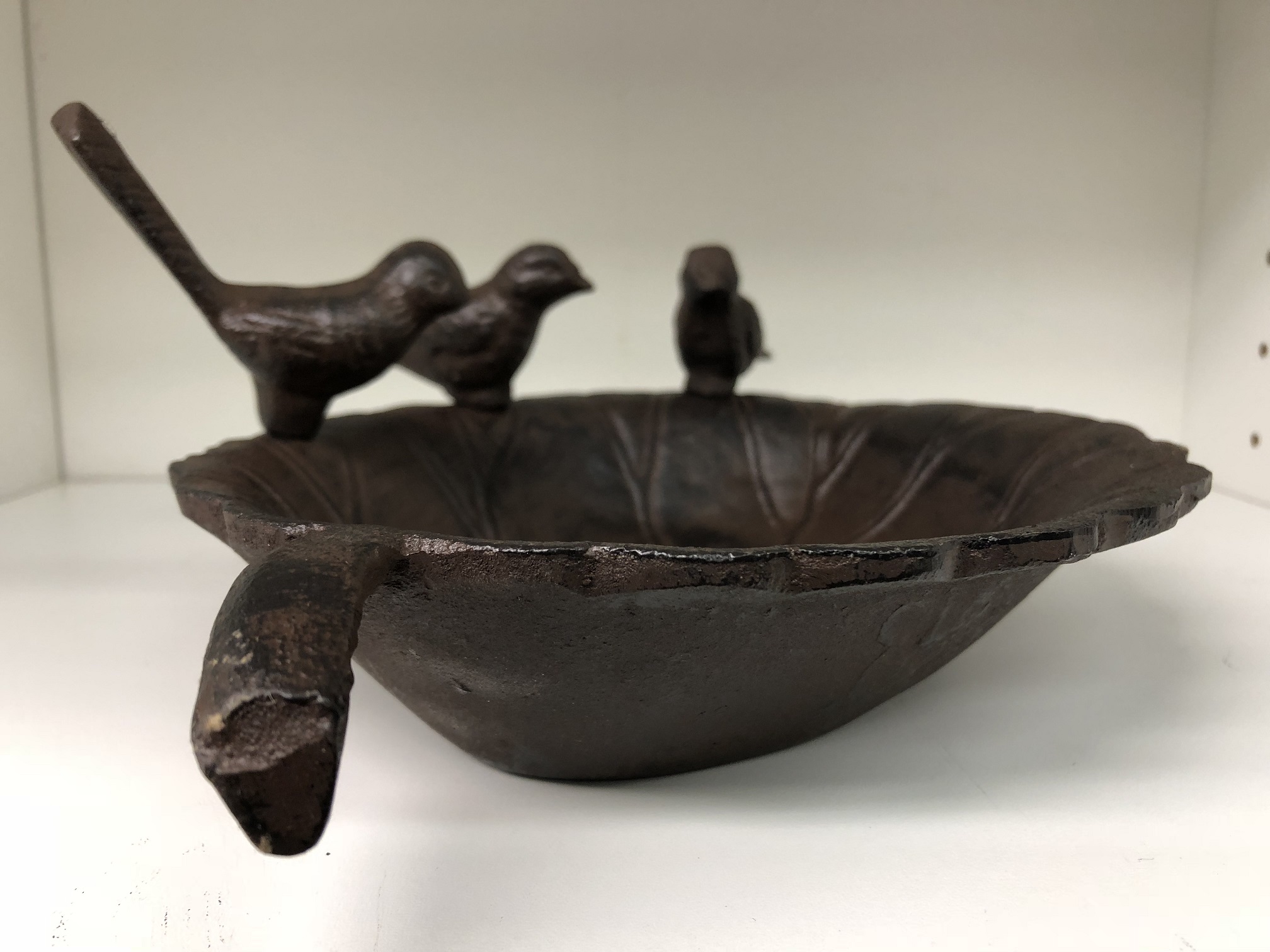 Vogelbad aus Gusseisen mit 3 Vögeln – in Blattform – 31 cm