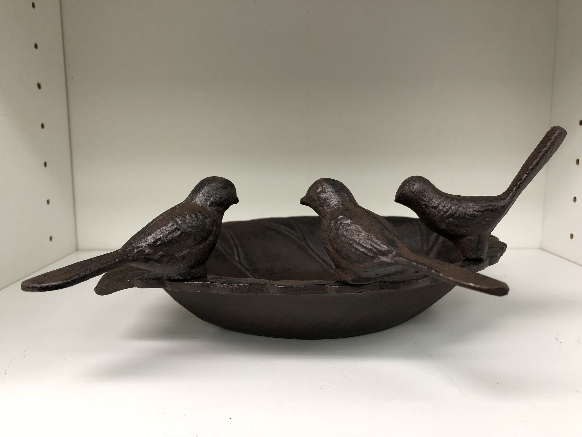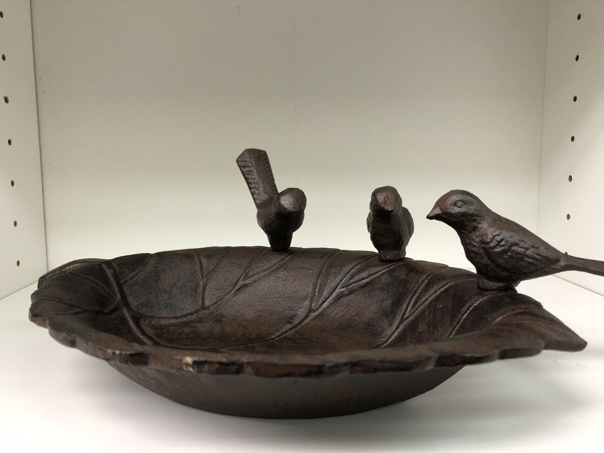 Lieferumfang: 1 x blattförmiges Vogelbad, Gusseisen, mit 3 Vögeln.