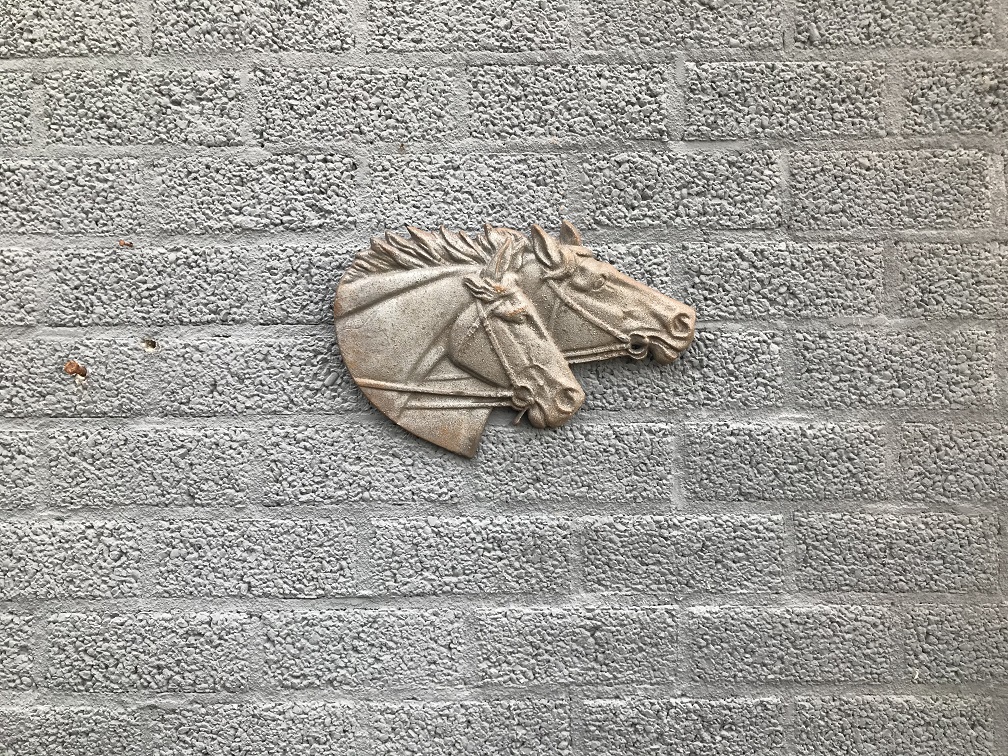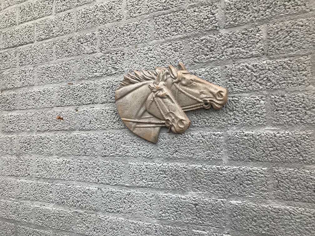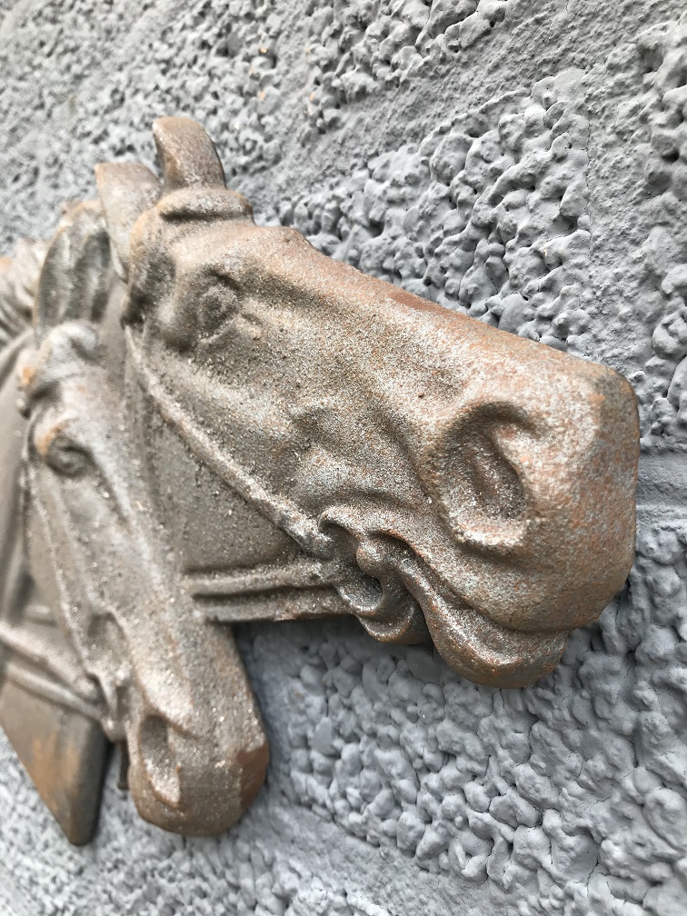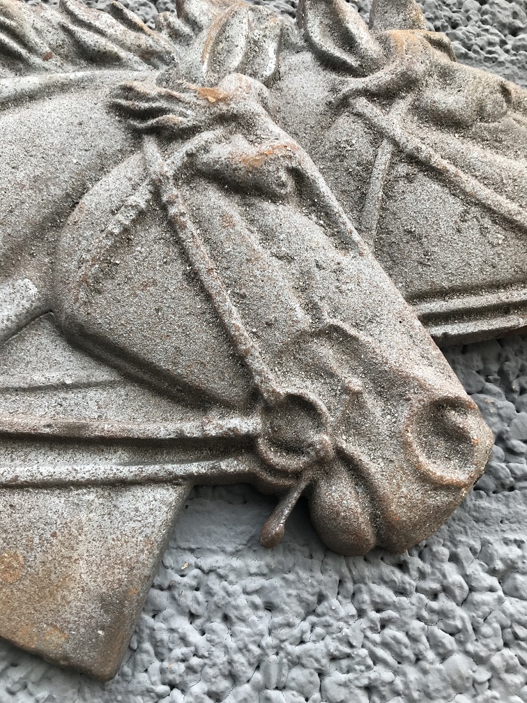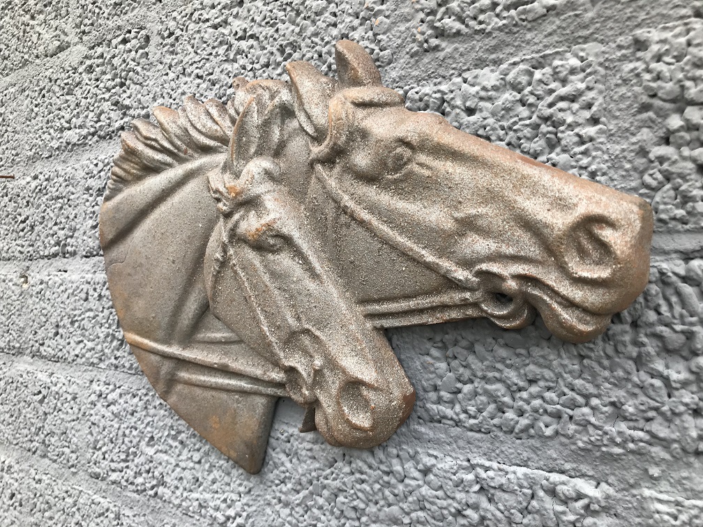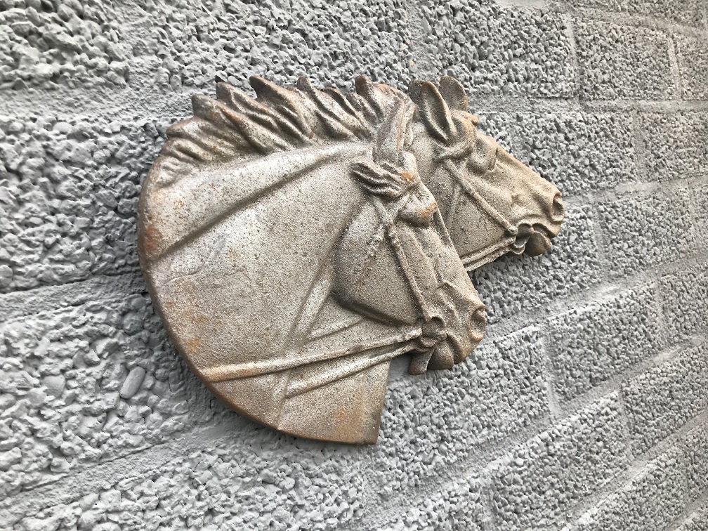 Wandplatte aus Gusseisen – 2 Pferdeköpfe – robust.