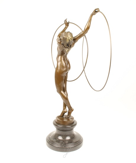 Lieferumfang: 1 Bronzeskulptur einer nackten Hula-Hoop-Tänzerin.