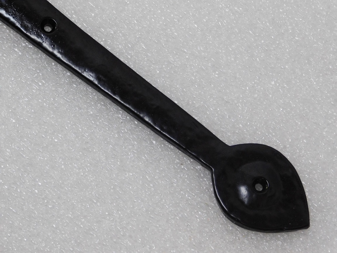 Dieses Paar schmiedeeiserner langer Türbänder eignet sich für viele verschiedene Zwecke und kann auch ideal in der Denkmalpflege eingesetzt werden, da die handgefertigten Eisenbeschläge immer zur Atmosphäre passen.