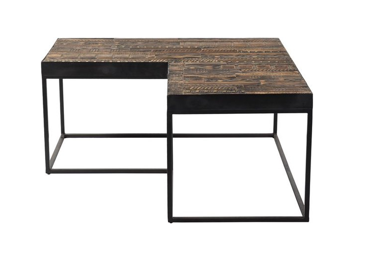 Malibu Couchtisch - Holzschnitzerei - Mangoholz mit Metallrahmen