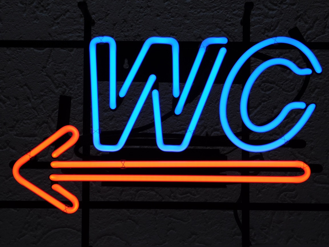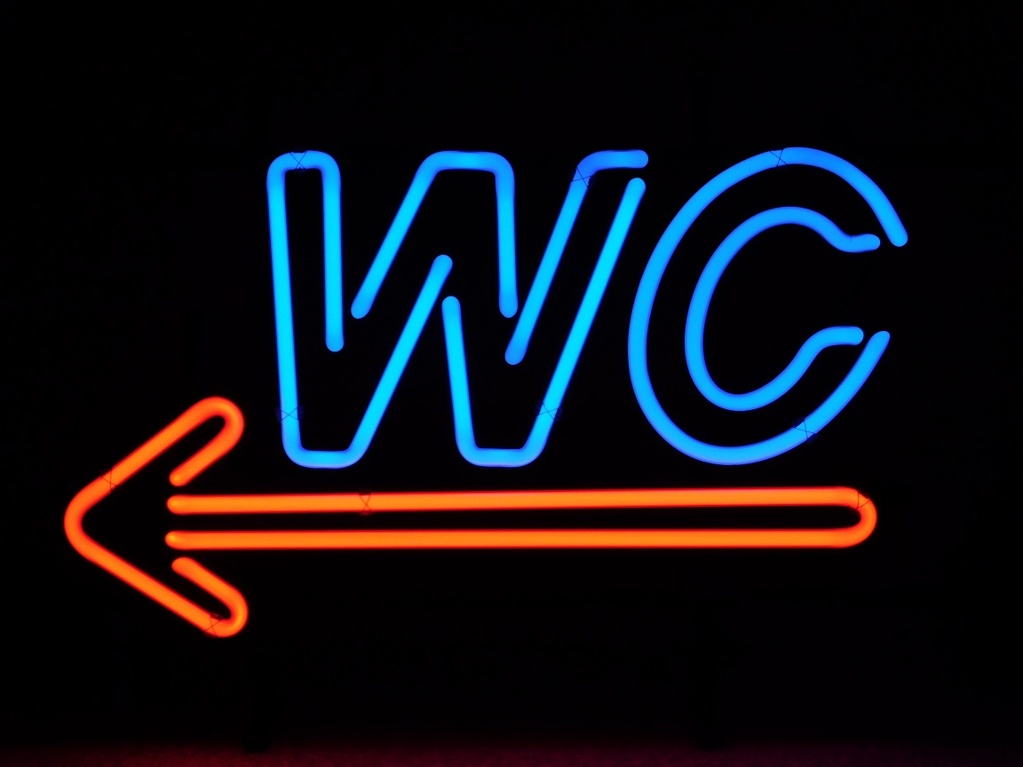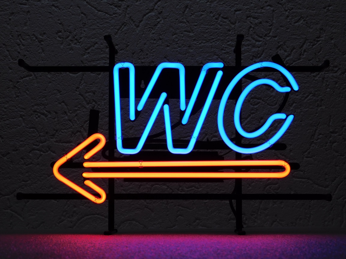 Verbinden Sie Stil und Funktionalität mit dieser auffälligen stehende Neonleuchte „WC“.