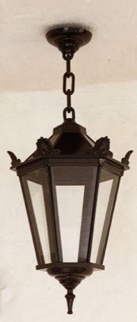 Zeer degelijke handlamp voor buiten, voorzien van glas en keramische fitting, weerbestendig.