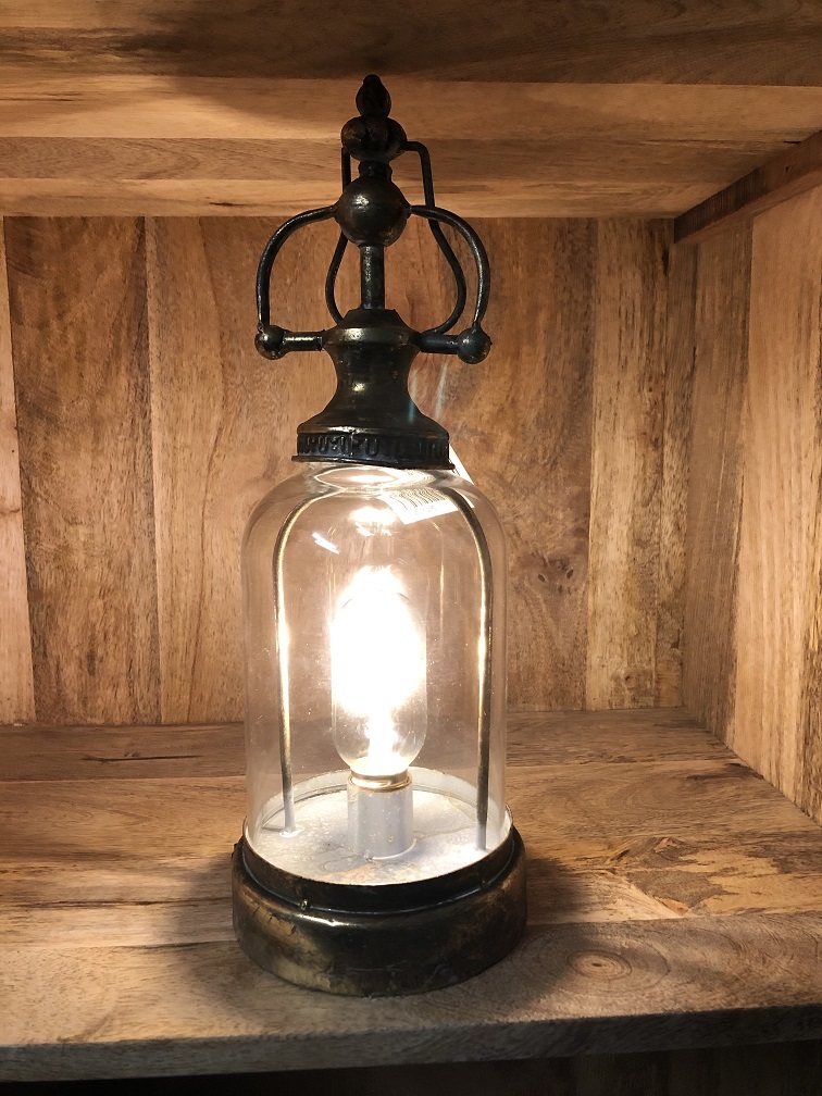 Schöne dekorative Lampe mit rundem Glas in einem schönen kupferfarbenen Metallgehäuse.