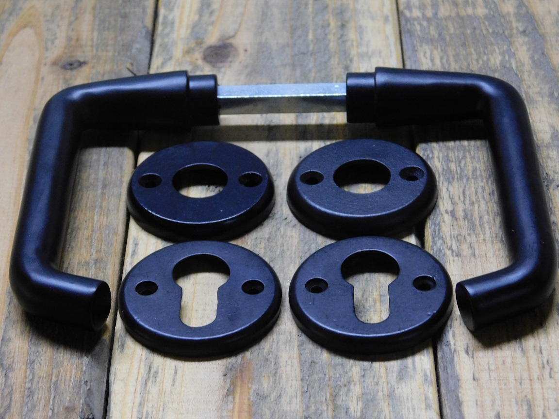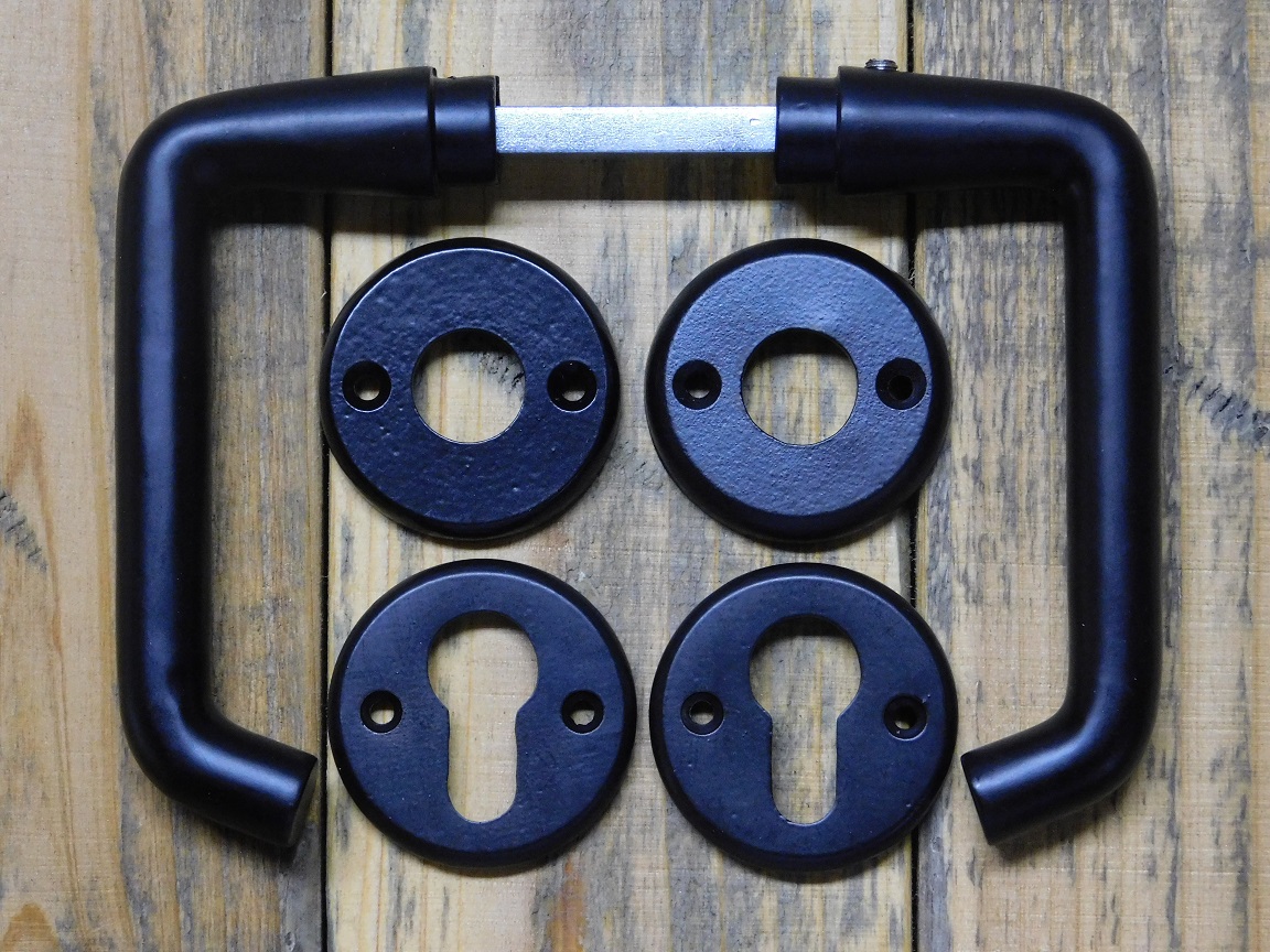 Set Türgriffe mit runden Rosetten + Schlüsselrosetten PC - Mattschwarz - Alu