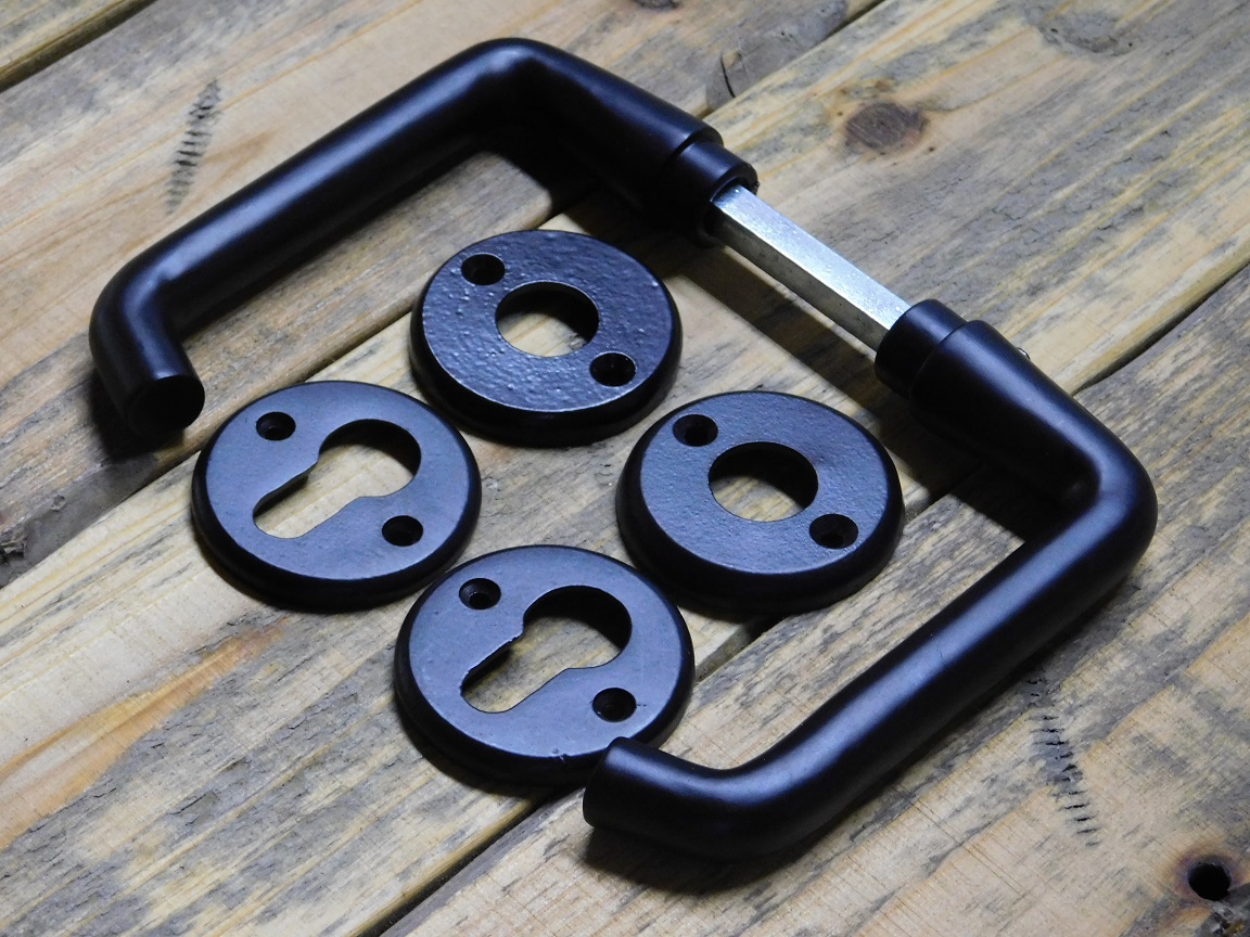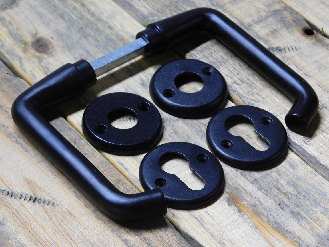Set Türgriffe mit runden Rosetten + Schlüsselrosetten PC – Mattschwarz – Aluminium