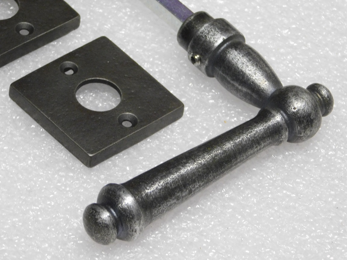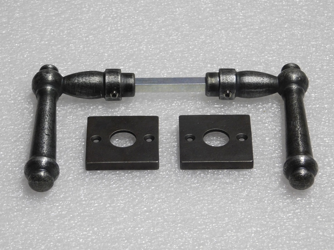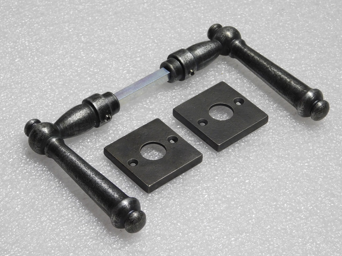 Set Türgriffe Windsor + Türgriffrosetten, quadratisch – Gusseisen, verzinkt
