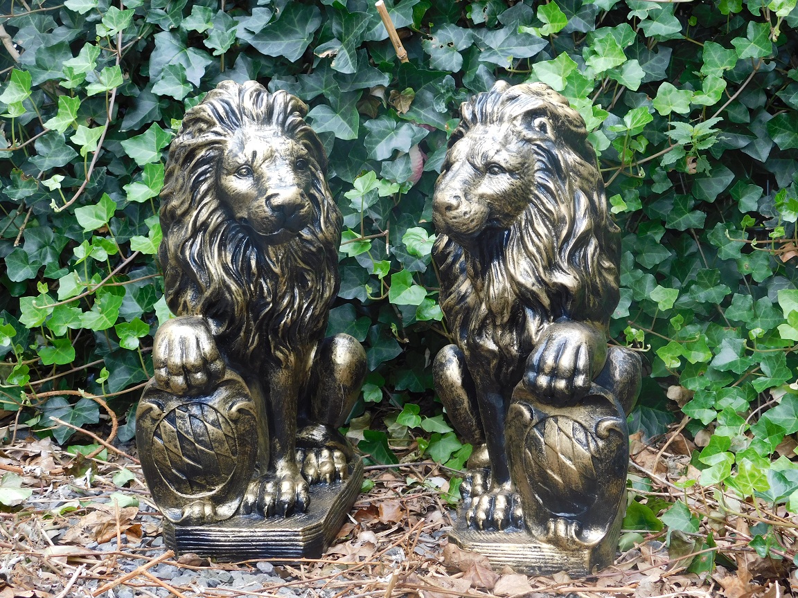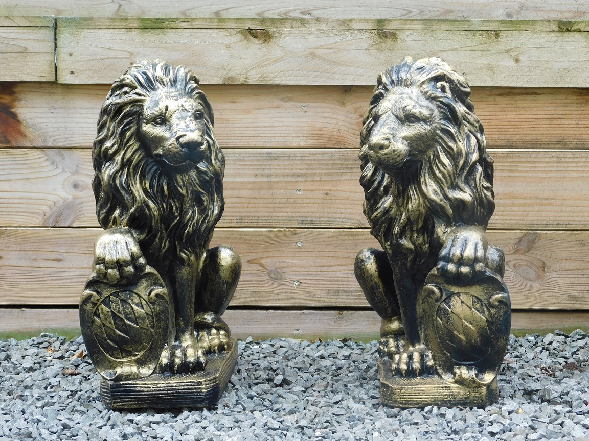 Lieferumfang: 1x Set mit 2 Löwen - schwarz/gold - Poly