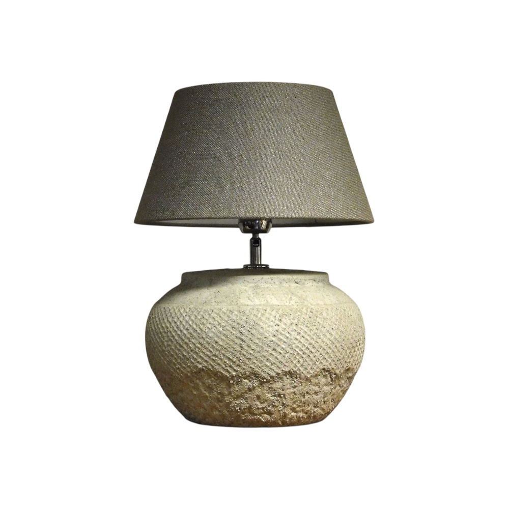 Einzigartige Tischleuchte aus Stein – 42 cm mit stimmungsvollem Schirm.