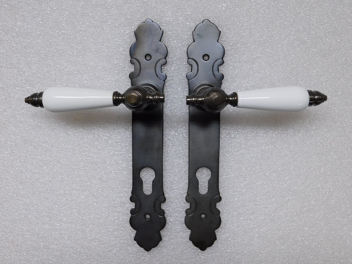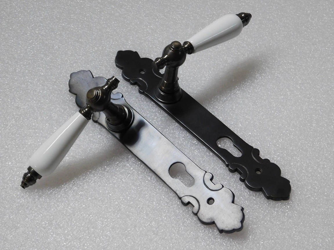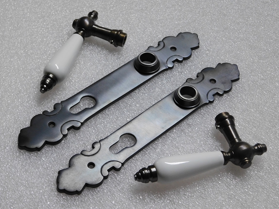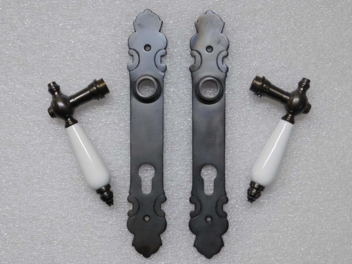 Türbeschlag-Set – 2 Türgriffe mit Türplatten PC92 – Dunkel patiniertes Messing – Klassisch & stilvoll