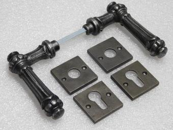 Lieferumfang: 1 Türknauf, 1 Türgriff, 4 Rosetten und Schlossrosetten, massives, poliertes Messing.