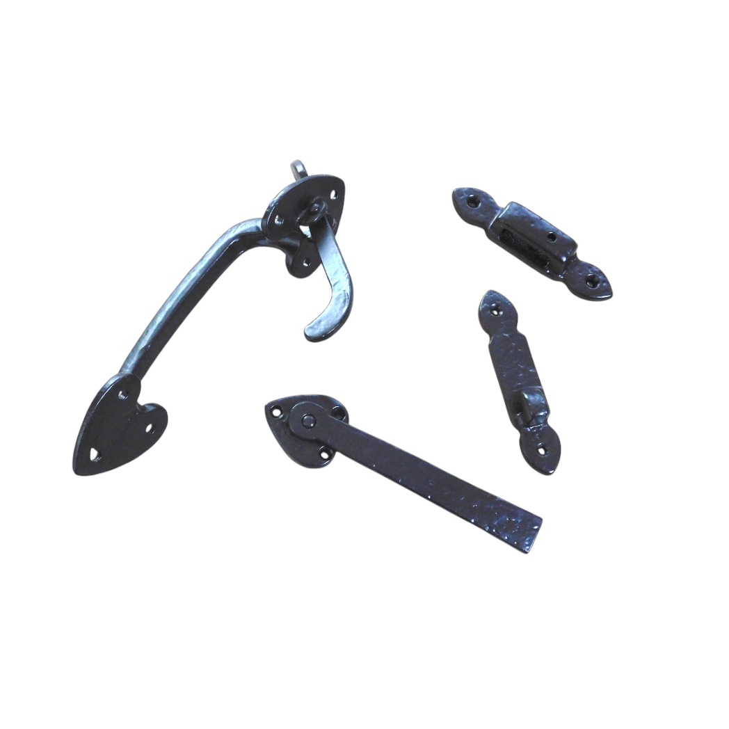 Stalltürschloss / Torbeschlag, kompletter Satz Türbeschläge, mattschwarz