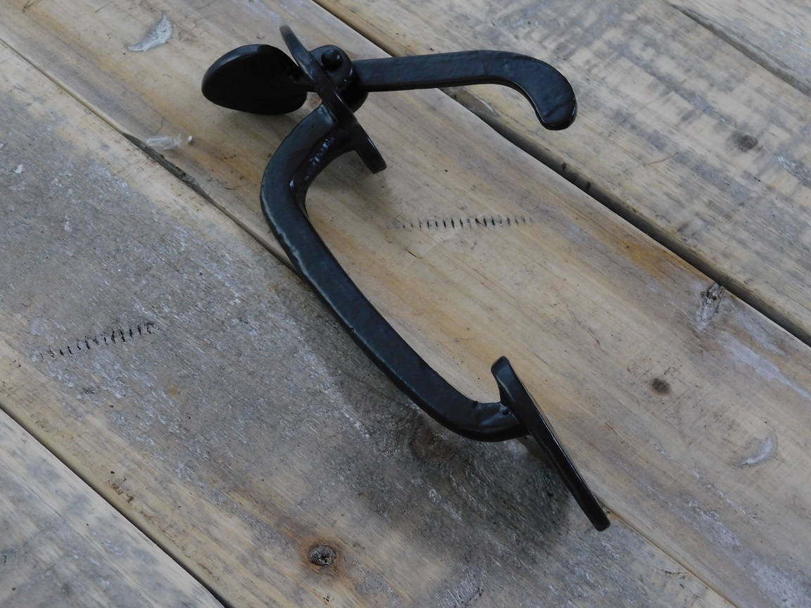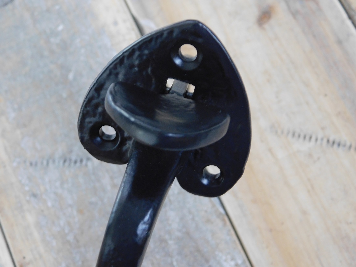 Hochwertiger und sehr attraktiver Türbeschlagsatz. Ein tolles Schloss für z.B. Tore und Ställe. Mattes schwarzes Stalltürschloss, schöner kompletter Satz. Es ist ein stilvolles und antik aussehendes Set.