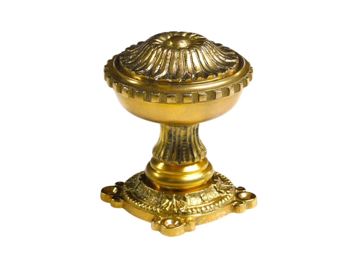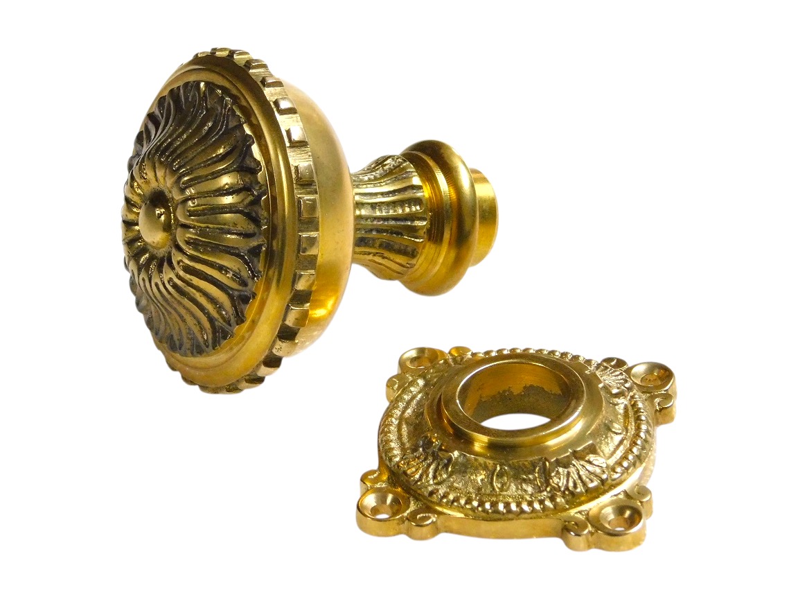 Der reich verzierte Knauf mit eleganten Linien und die dekorative Rosette verleihen ihm ein authentisches, zeitloses Aussehen.