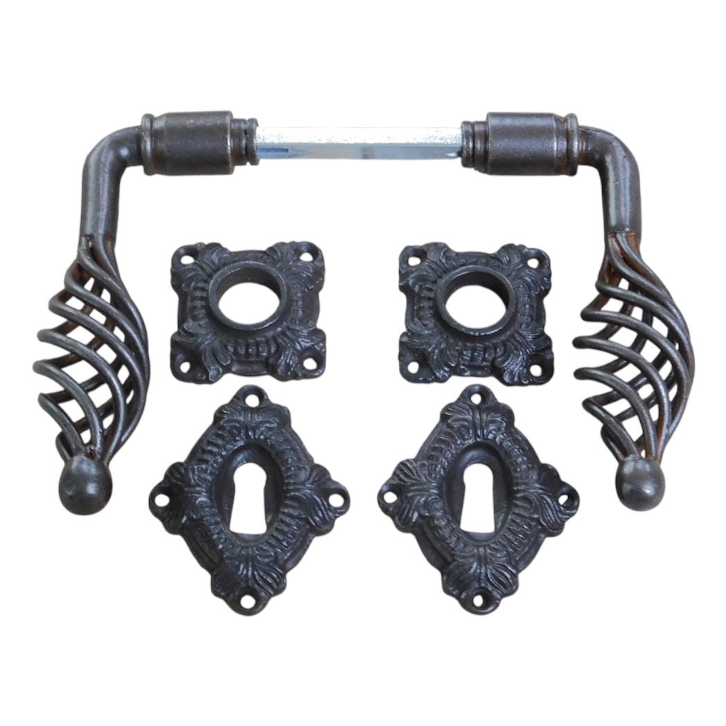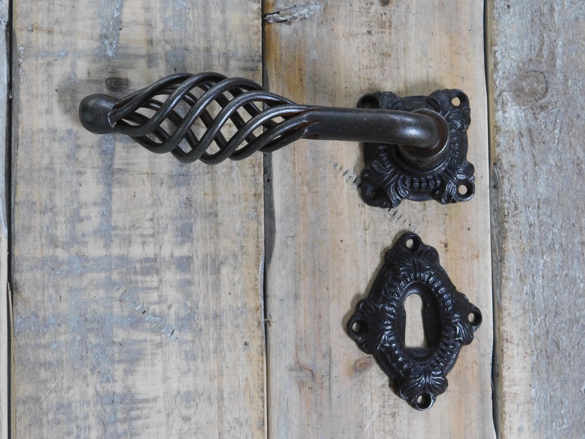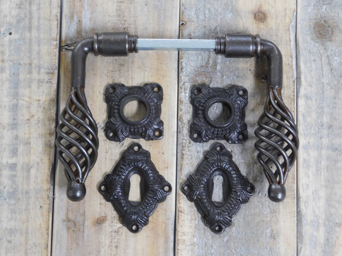tags: Drückergarnitur, Klinken mit Zwirbel, Landhaus Türbeschlag, Baubeschläge, Türbeschläge für Innenüren, Eisen Türbeschlag, Klinken, Türgriffe Eisen, Klinkengarnitur, antike Beschläge,