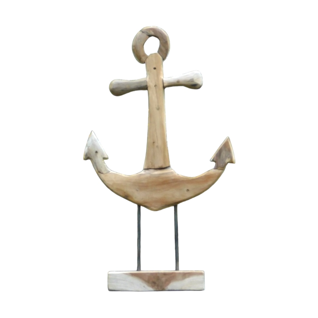Handgefertigter Anker auf Ständer - 55 cm - Teakholz