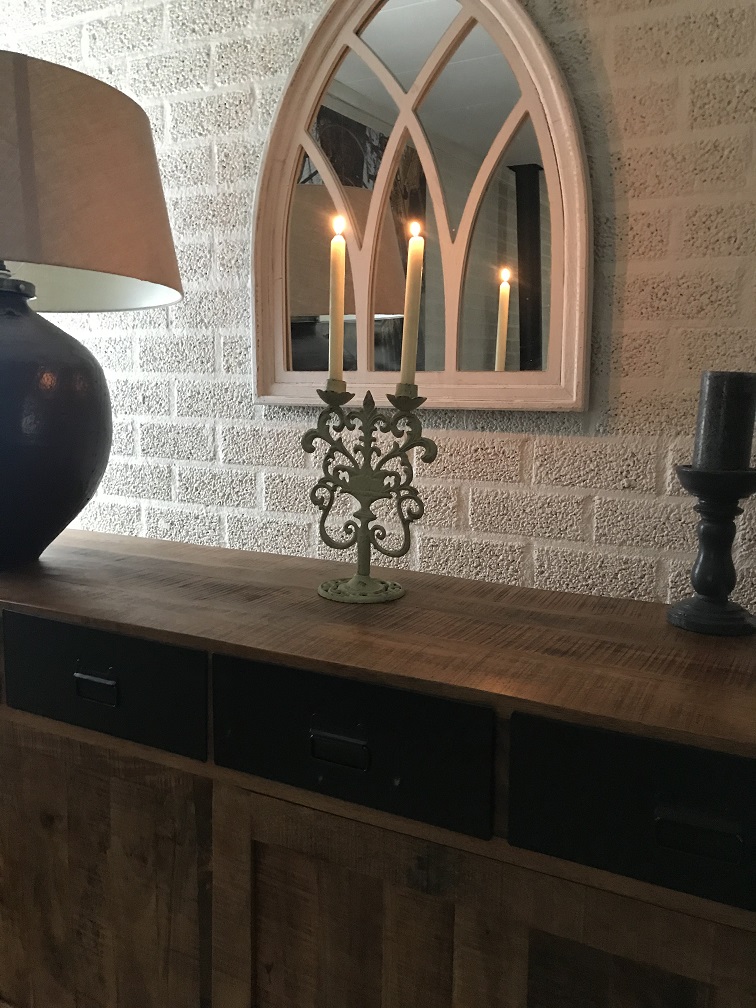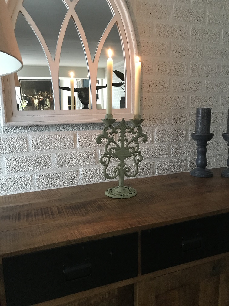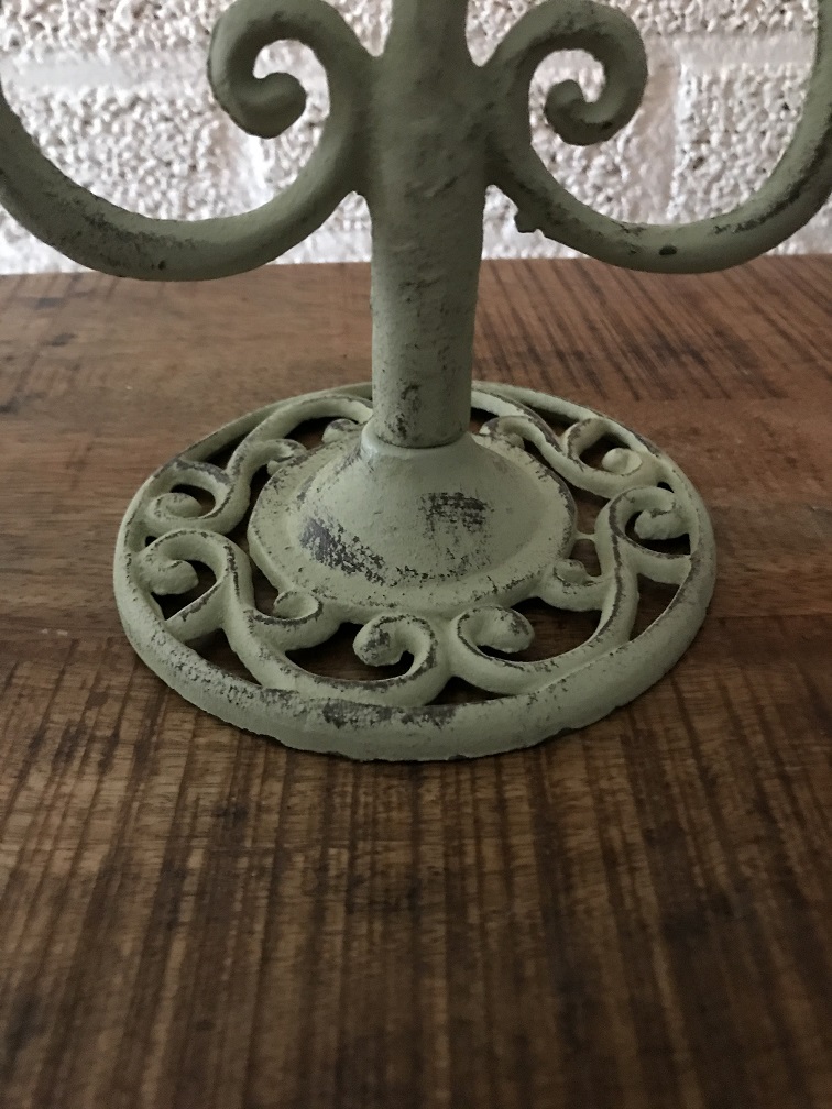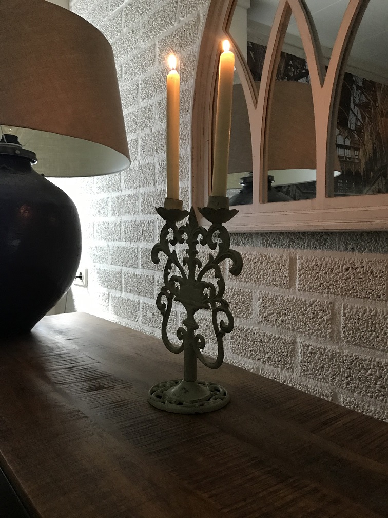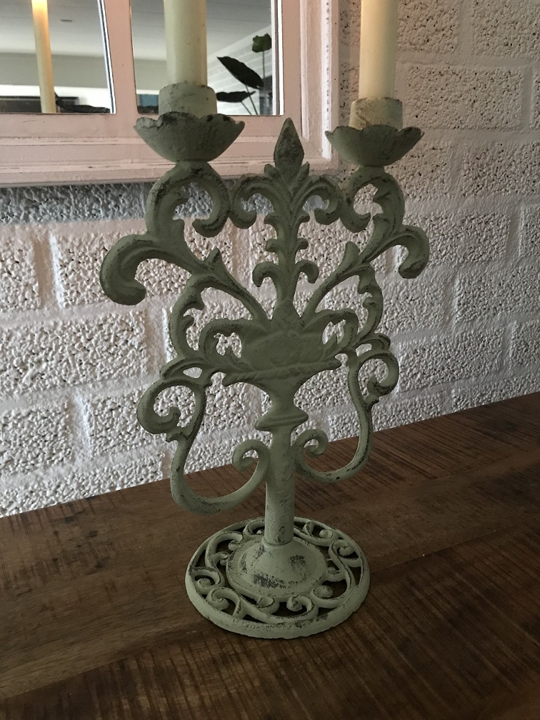 Dieser Kerzenständer in der Farbe antik-weiß-rost ist solide verarbeitet und schön gestaltet.