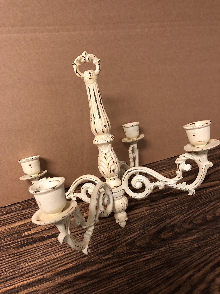 Lieferumfang: 1 x Kerzenständer Gusseisen alt-weiß-rost, 4 Kerzenhalter.