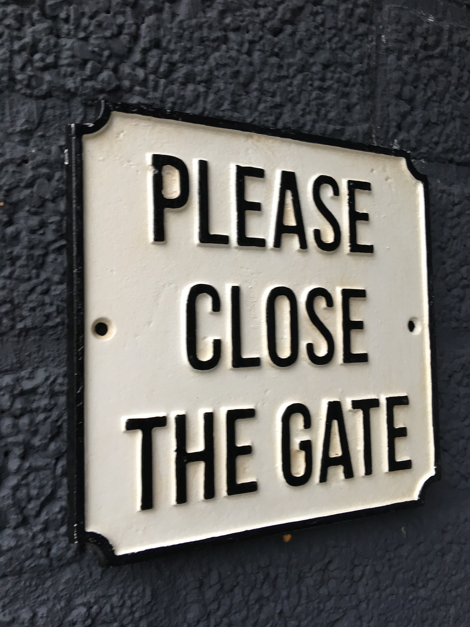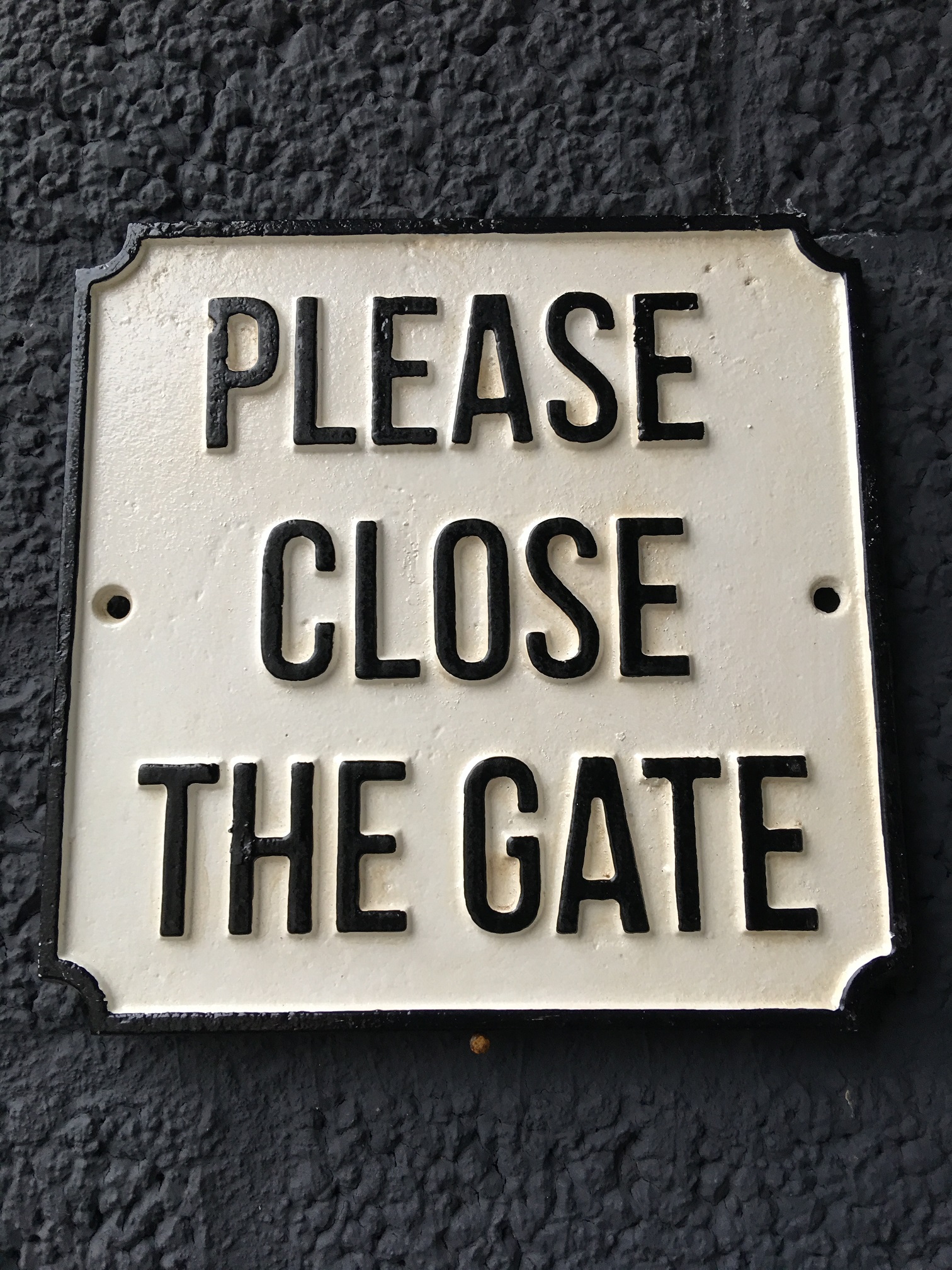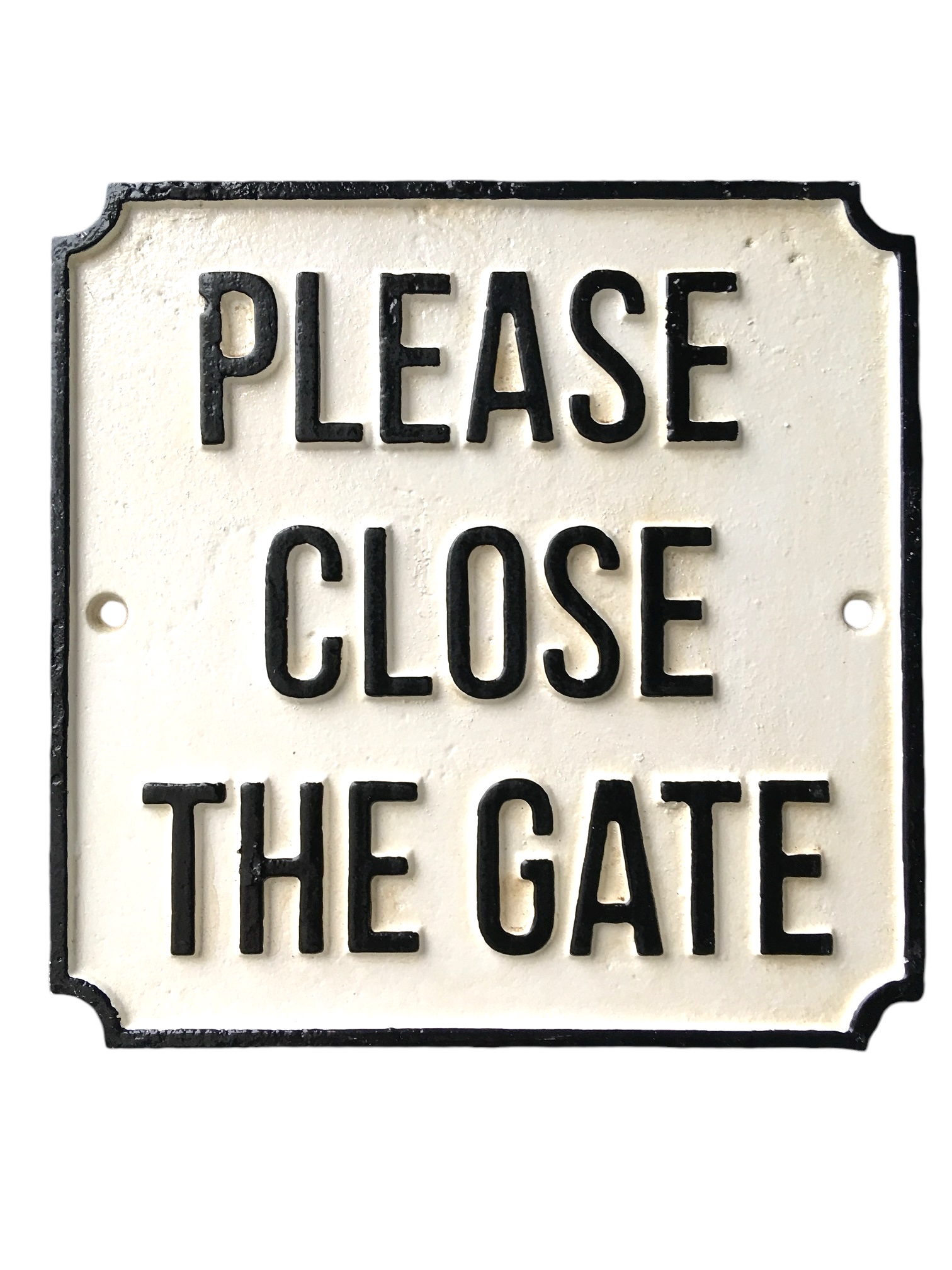 Ein Schild mit der Aufschrift "Schließt das Tor" für die Tür oder das Tor.