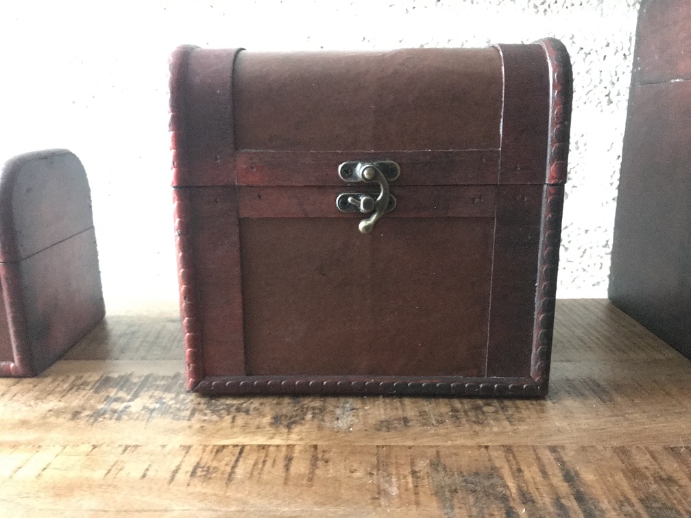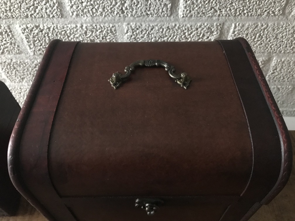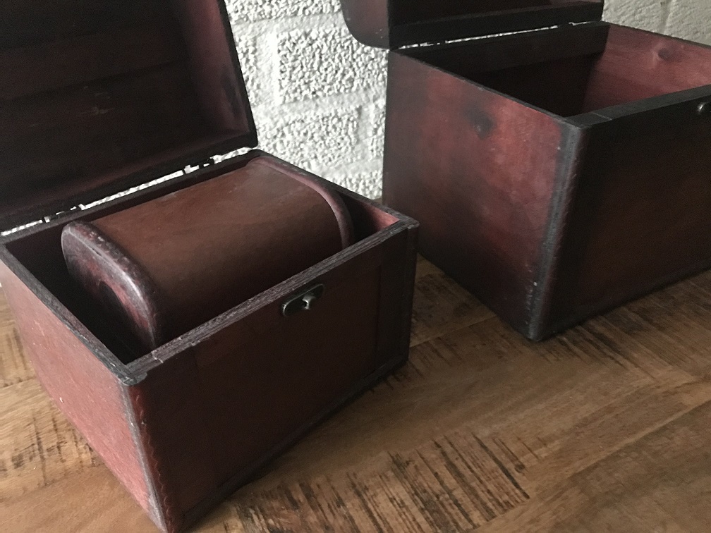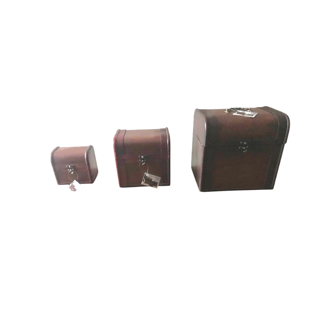 Hübsche Dekoration, zum Beispiel für die Aufbewahrung von Schmuck. Diese Kisten passen zusammen und die größte hat einen Griff an der Oberseite, so dass alle drei gleichzeitig weggehoben werden können. So kann man darin allerlei Kleinigkeiten aufbewahren, aber diese Kisten haben auch eine dekorative Funktion, denn sie haben einen nostalgischen und antiken Look!