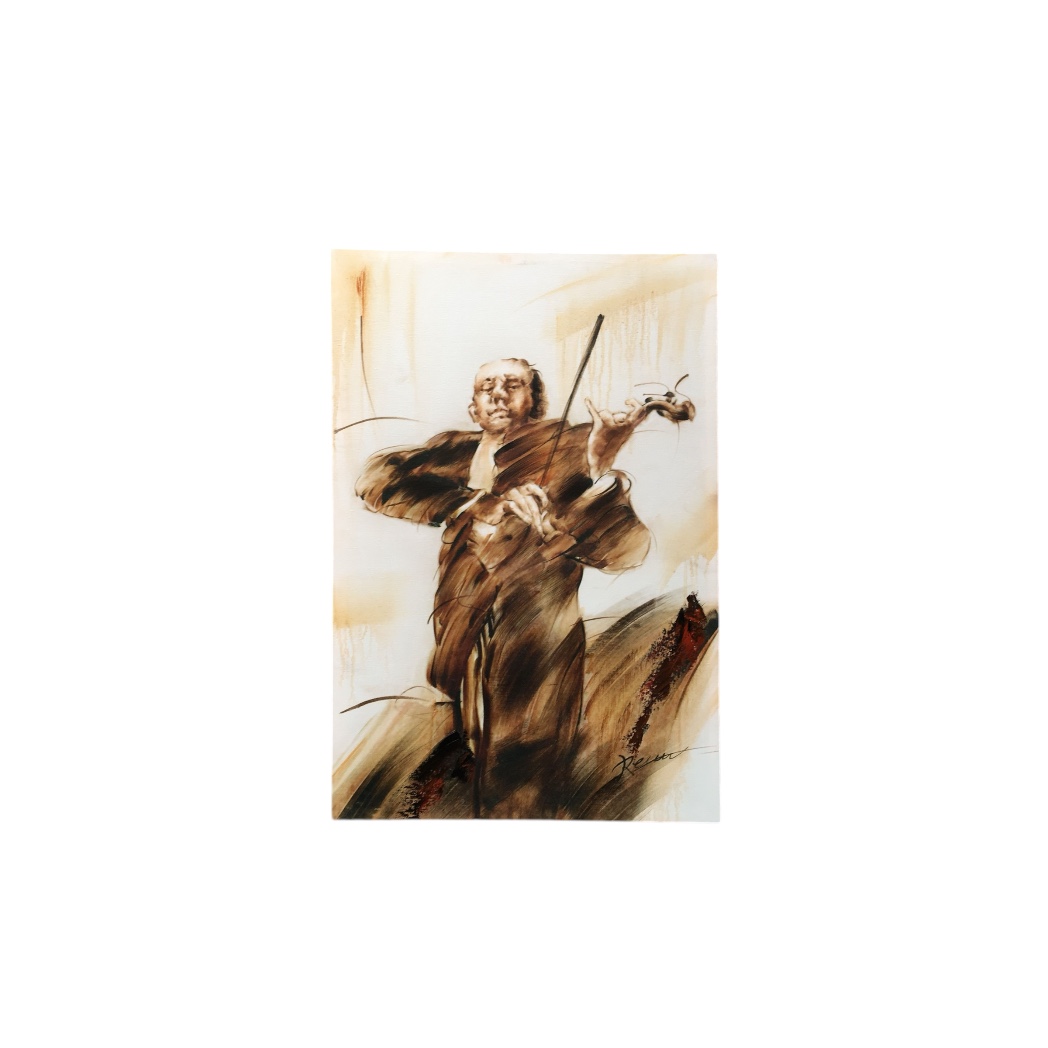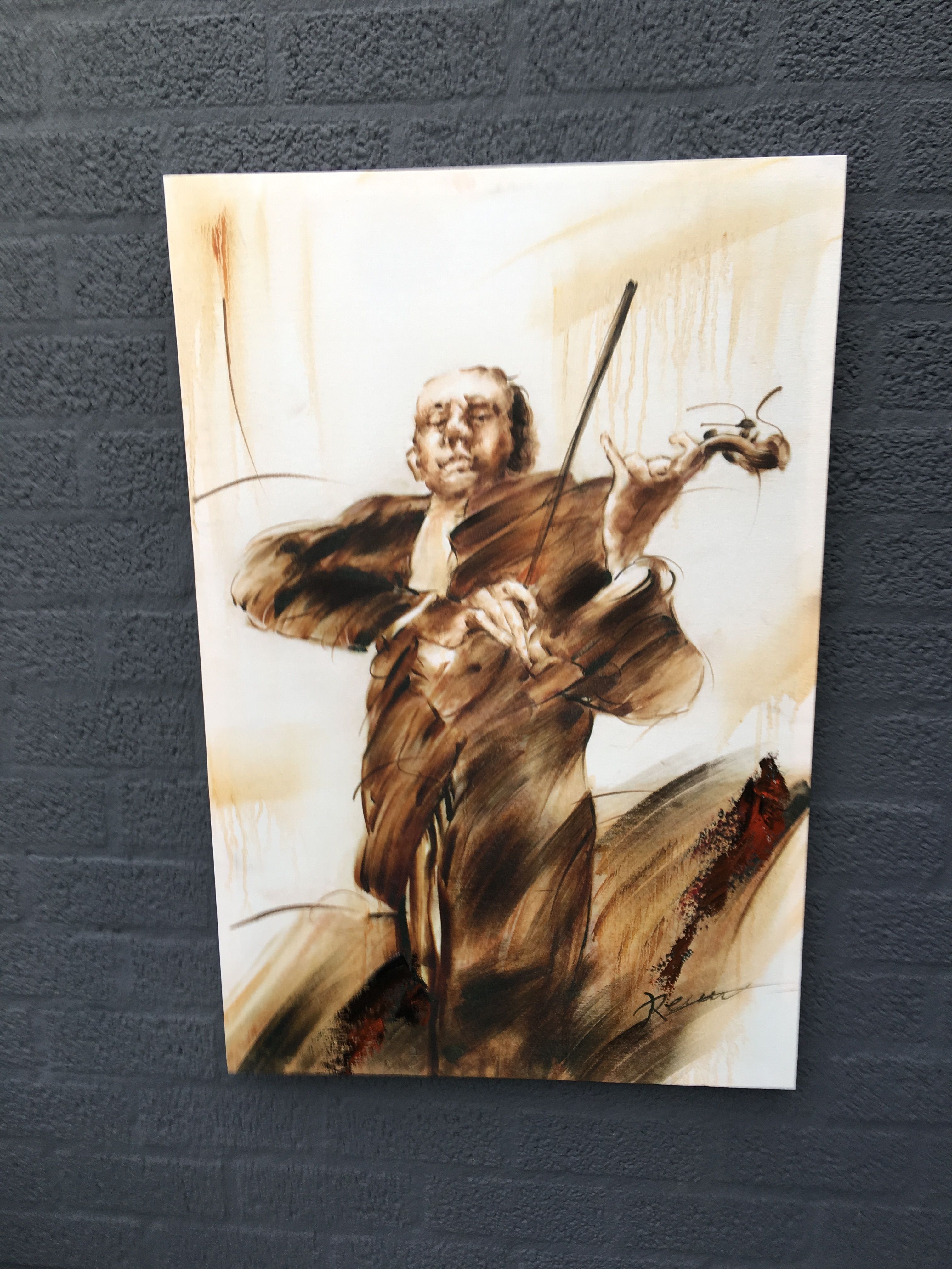 Lieferumfang: 1 x Öl auf Leinwand, der Geiger, vollfarbig, auf Keilrahmen gespannt, in schönem Zustand.