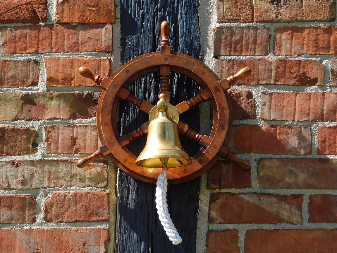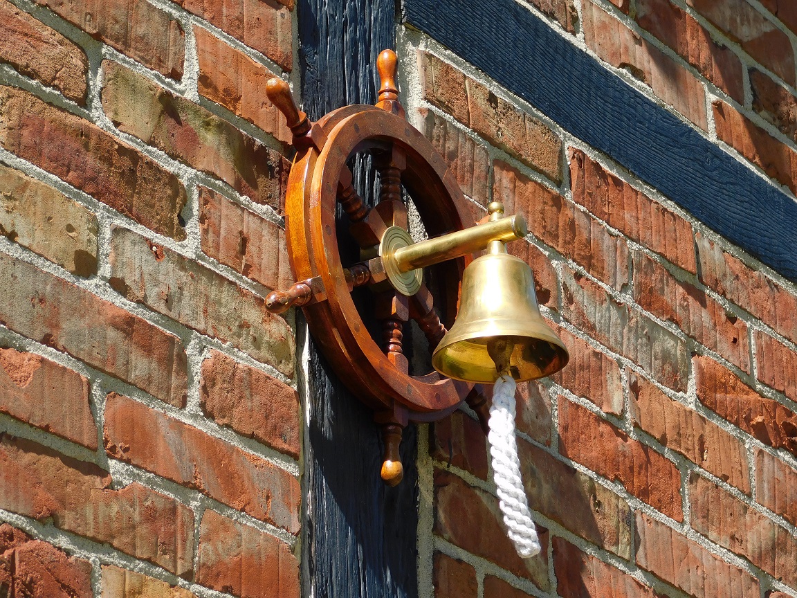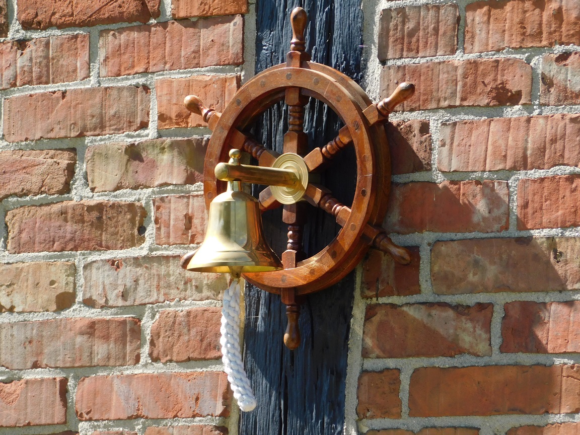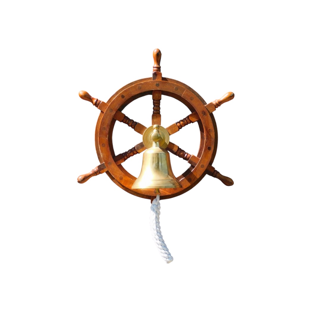 Mooi hardhouten stuurwiel met een mooie bel van messing, heeft een prachtige klank.