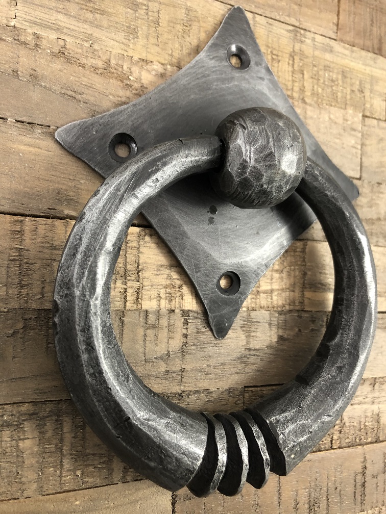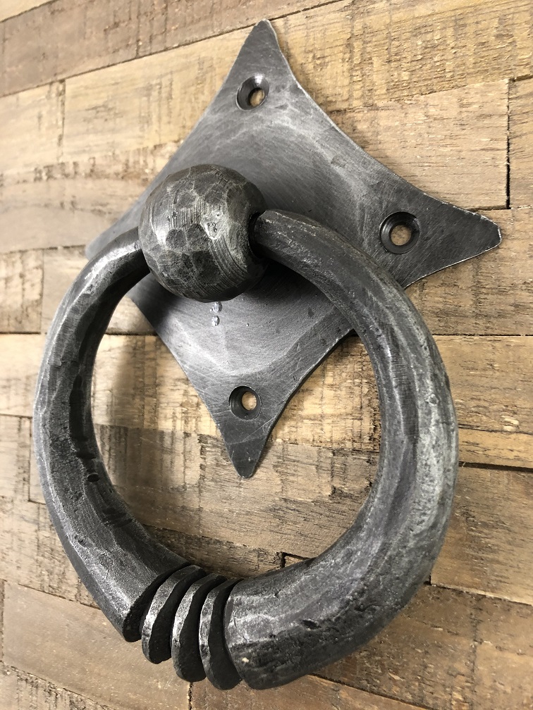Pull-ring - deurklopper smeedijzer voor op de rustieke houten deur, kloosterdeur, landhuisdeur, etc.