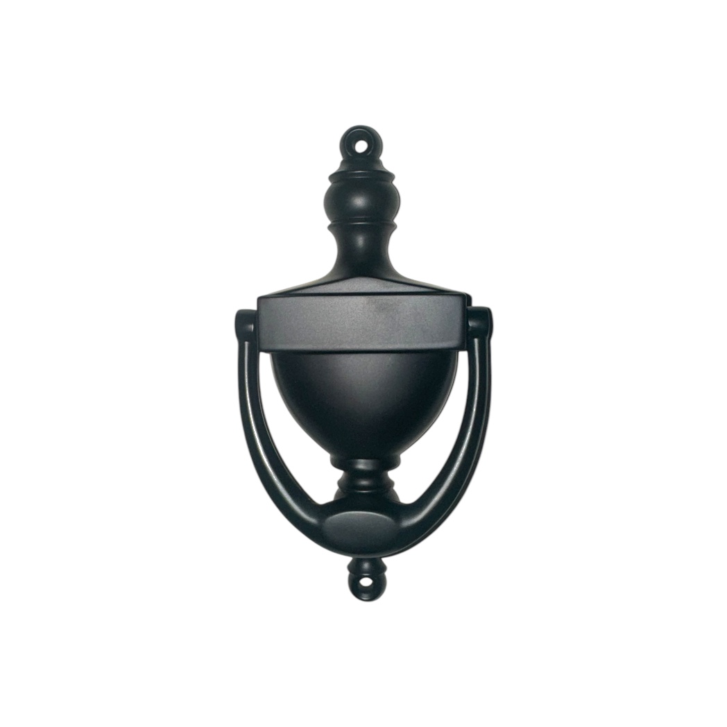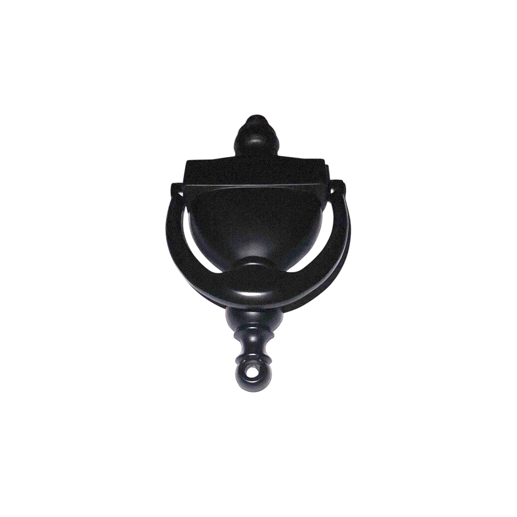 Mat zwarte deurklopper, metaal, modern en klassiek model.