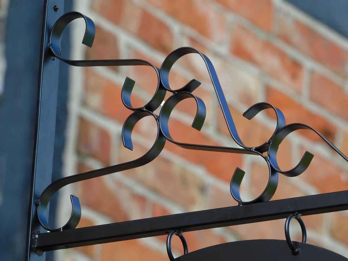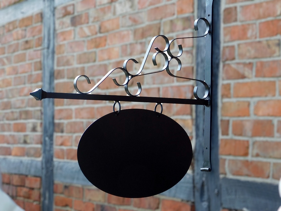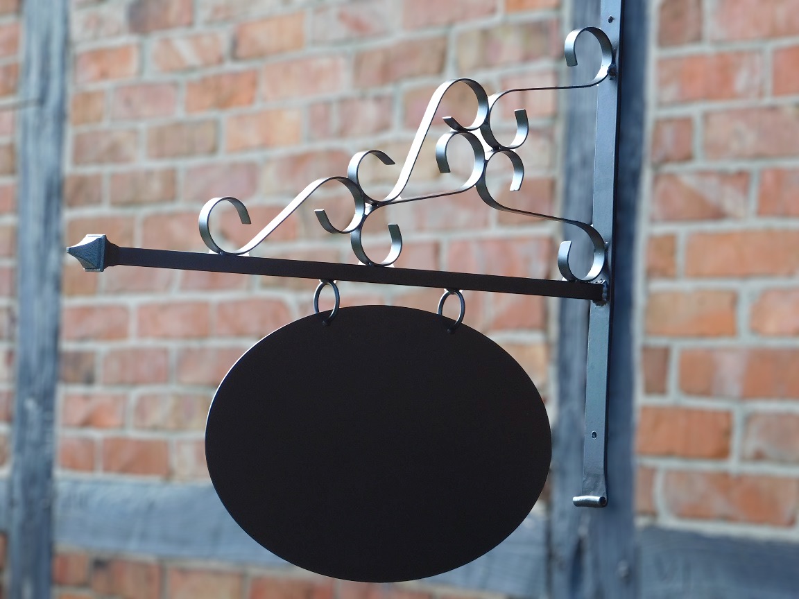 Zwaar smeedijzeren reclamebord in klassieke stijl, geschikt om te bedrukken en stijlvol voor winkels, restaurants, hotels en thuis!